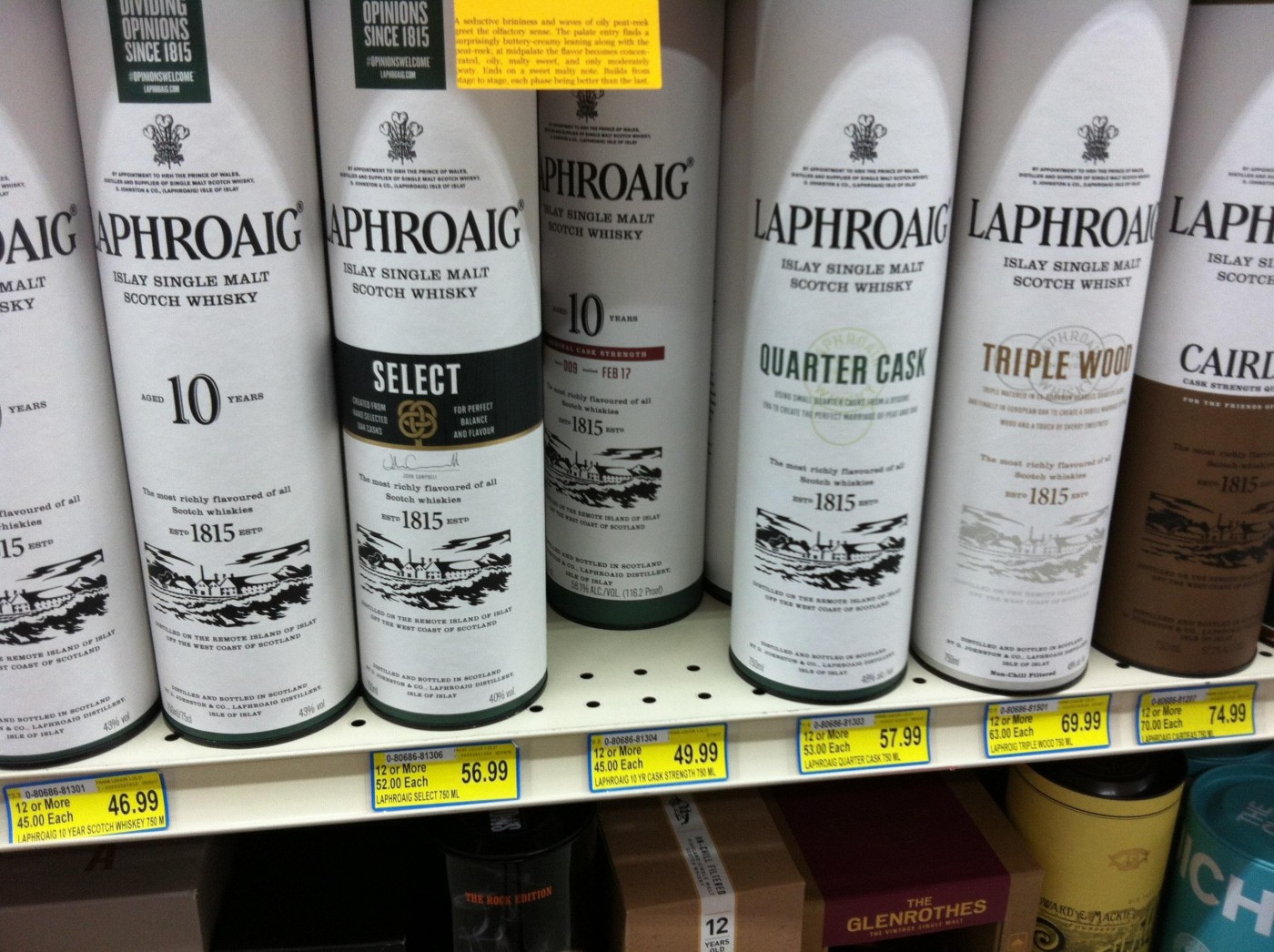 Well, most of those Laphroaig prices in my pic above are pretty typical for the US—it's just that $50 10 CS that's totally wackerdoodles.