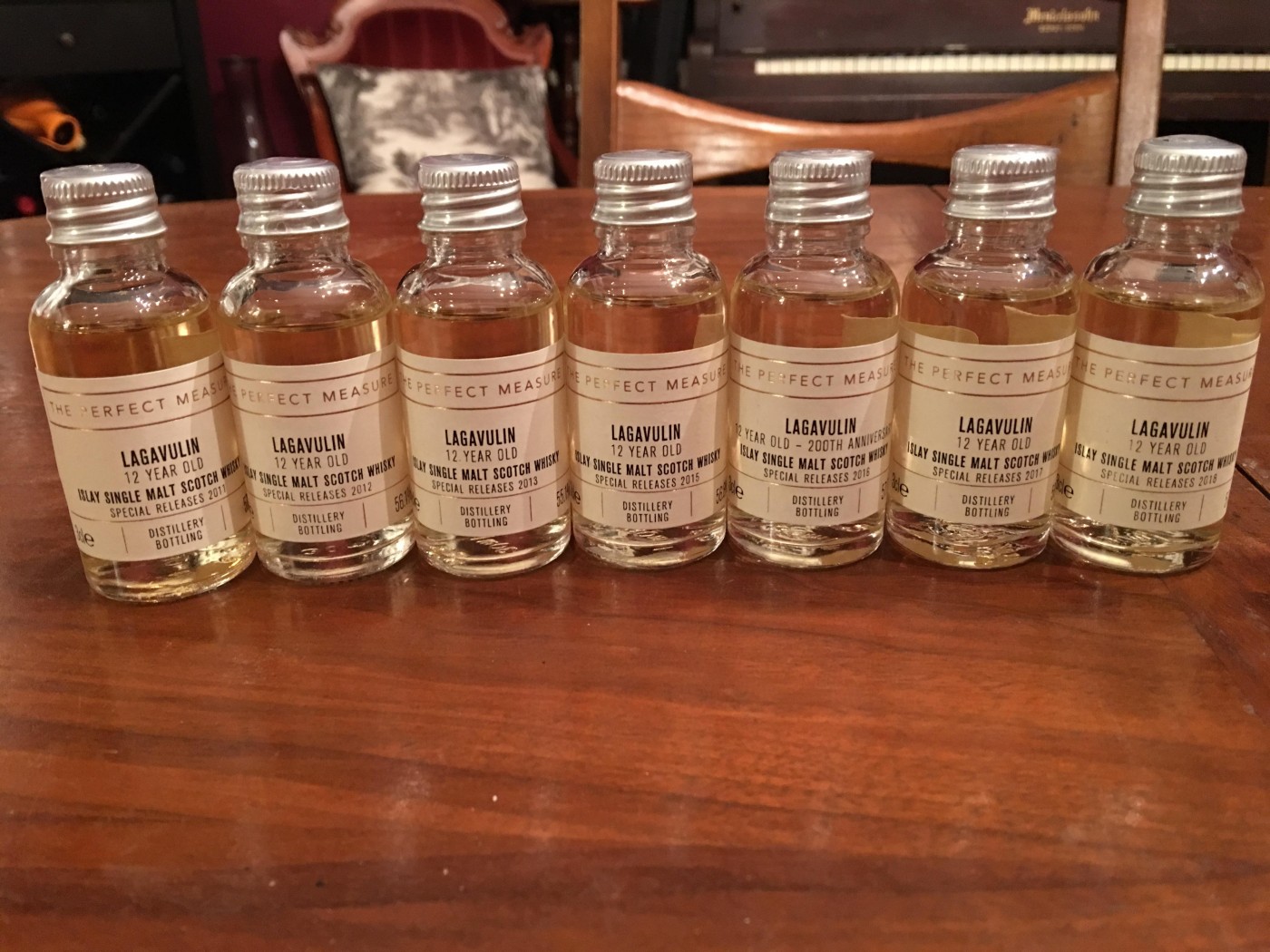 So back in October I purchased 7 samples of different batches of the Lagavulin 12yo Cask Strength from the Whisky Exchange. I think all 7 samples added up to about the cost of one bottle of Lagavulin 12yo. The batches purchased were from the 2011, 2012, 2013, 2015, 2016, 2017, and 2018. There is the one glaring absence of the 2014 . . . but what can you do?