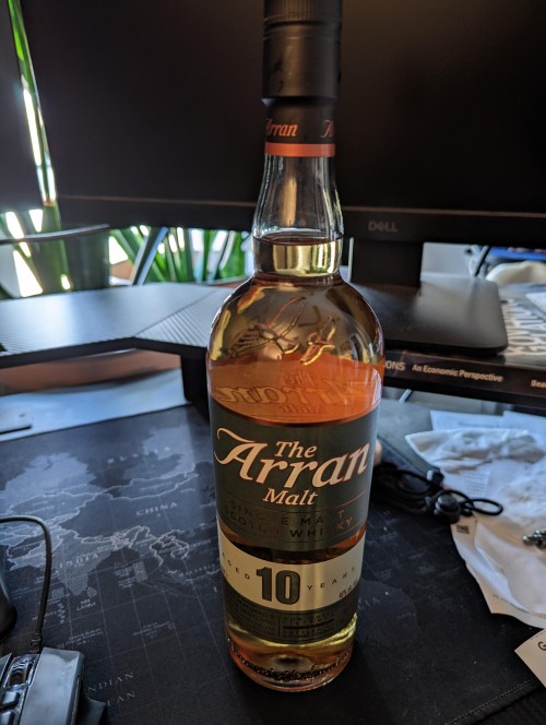 As most of you know, I'm a big Arran fan. I've tried almost every Arran I've been able to find here in the states. I've been lucky enough to find some single casks and independent bottlings lingering around. And while I've had a few bottles of this 10yo, it's actually been a while since I restocked on it and I've never reviewed it. So let's dig into this "core" product in the Arran lineup.