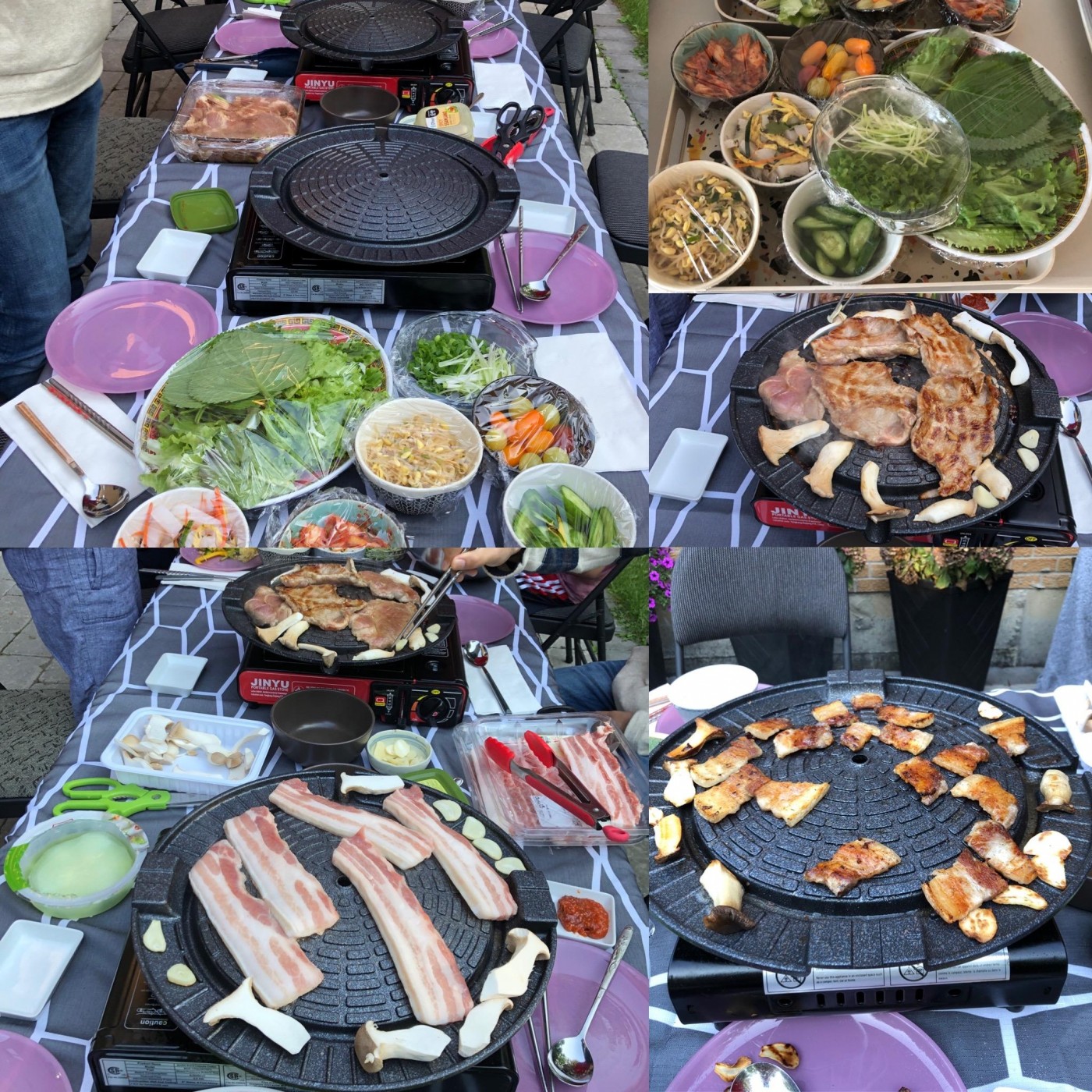 Tonight we had friends over for a Korean BBQ in the back yard. We supplied the grills, sides and the pork belly, and they supplied marinated pork and salad.