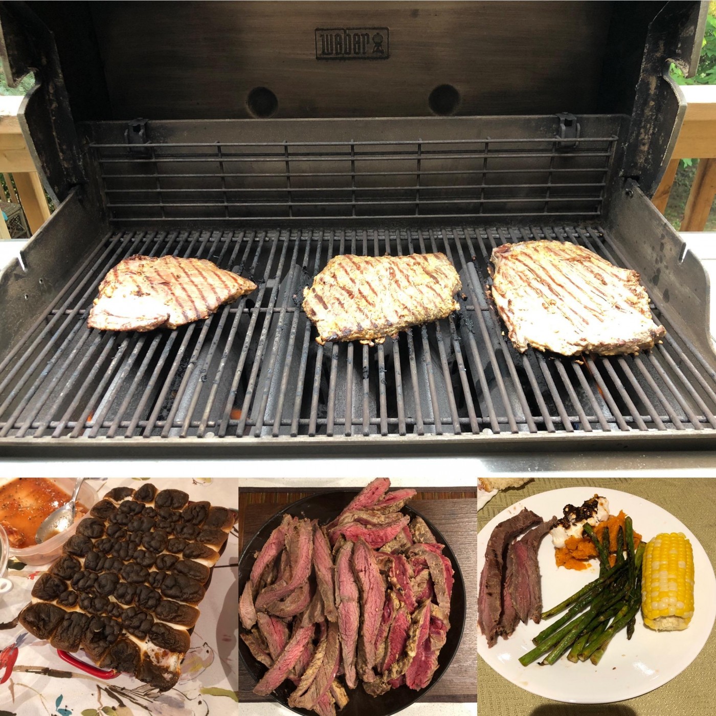 Tonight we celebrated the second night of Rosh Hashana. My brother and his family came over and my sister in law marinated some flank steaks which I grilled. The asparagus are tossed in olive oil, balsamic and kosher salt then grilled as well. Not seen in this photo are my aunt’s pickled salmon and my mother’s challah.