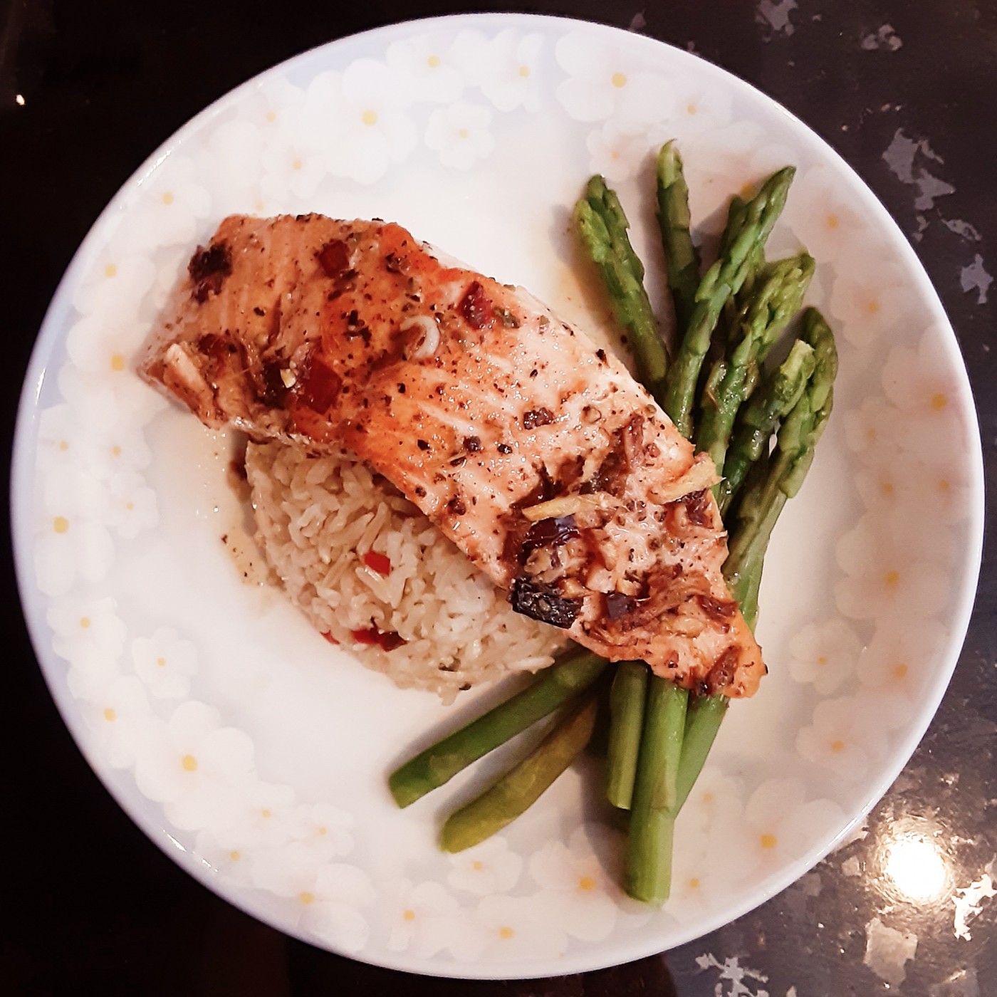 Pan Fried Lemon Pepper Trout with Brown Basmati Rice and Asparagus...