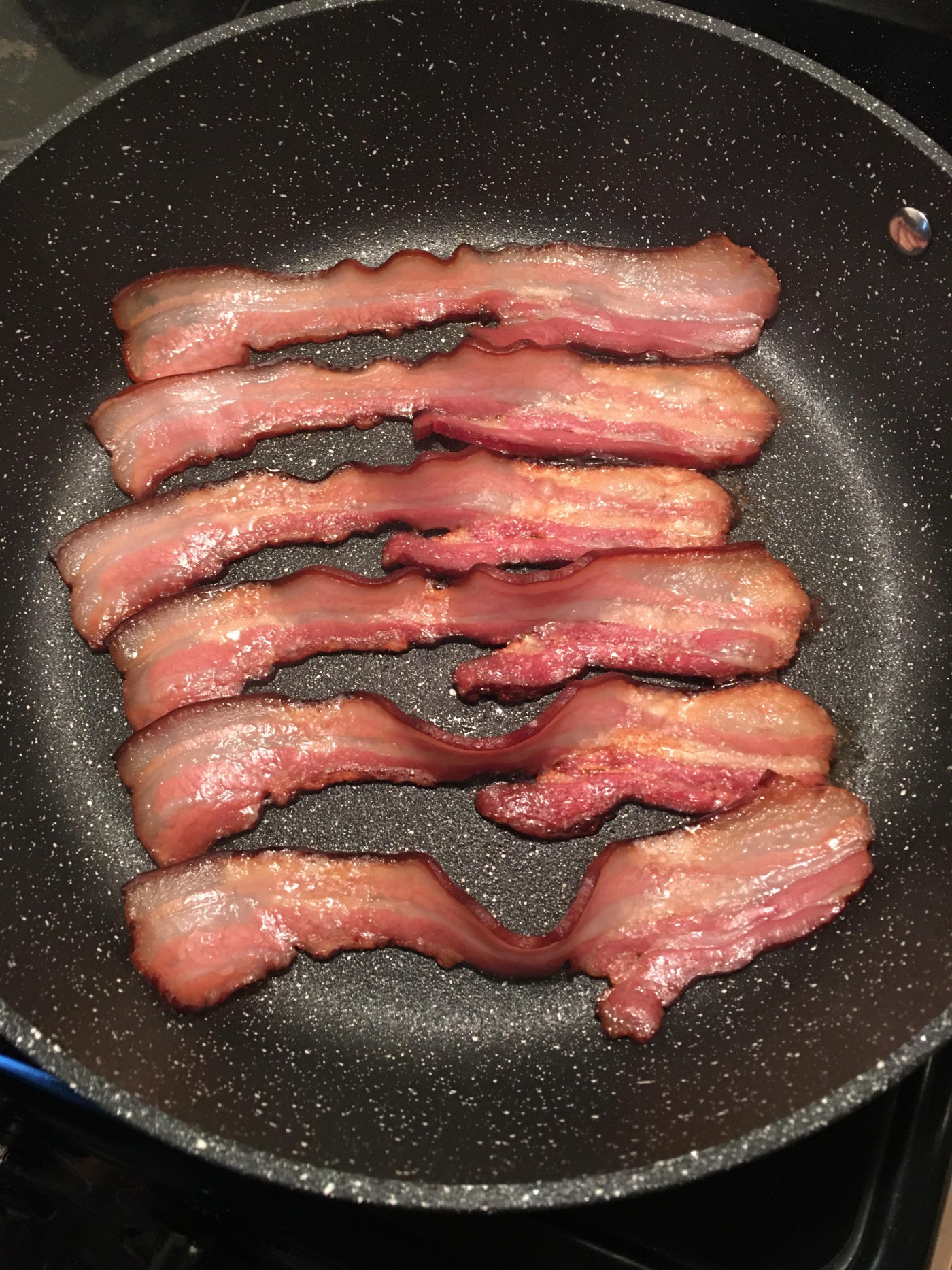 @RianC, you are a brave soul cooking outdoors with two toddlers, Here is a pic of pan fried bacon...with no toddlers around.