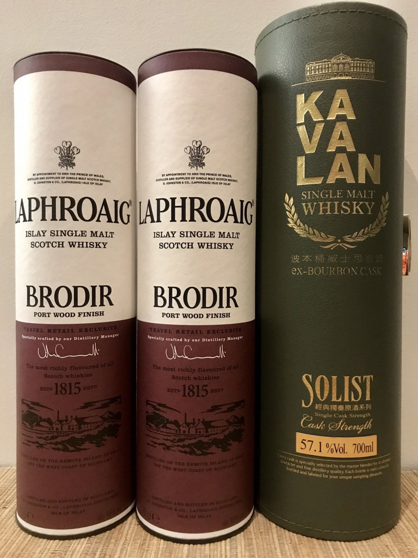 A couple of bottles of the Laphroaig Brodir, the Travel Retail Exclusive bottling.