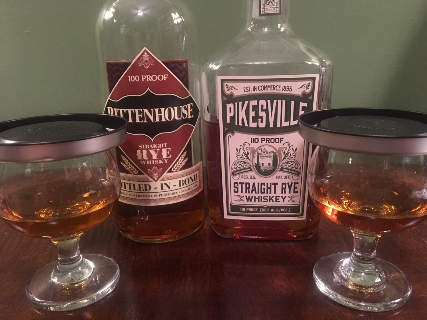 Tonight I was inspired by the Pikesville Rye discussion going on. So I pulled out my bottles of Pikesville and Rittenhouse. I bought them on the same day a few months back. I have obviously been hitting the Rittenhouse much harder than the Pikesville. I think it was because the Pikesville finish struck me as bitter and off. So I put it at the back of my cabinet for a while.