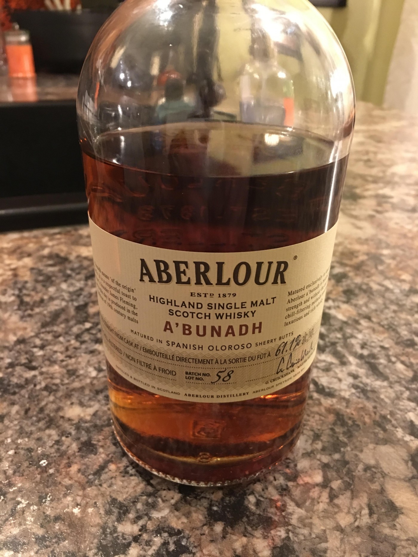 @Victor The bottle of A’Bunadh did not survive the night. I got more than a sample of it (my friend kept filling my glass with it). But none to taste at a later time in a less hectic and busy environment. I found it similar in character (though not identical) to Macallan Sienna, but maybe because it’s bottled at cask strength, the A’Bunadh was much richer and the flavours were far more vivid. There were lots of red fruits, raisins, dates and some nice oakiness on the finish. It’s the first time I actually believe that a NAS scotch contains some older whisky. I will be buying a bottle of this before Christmas.