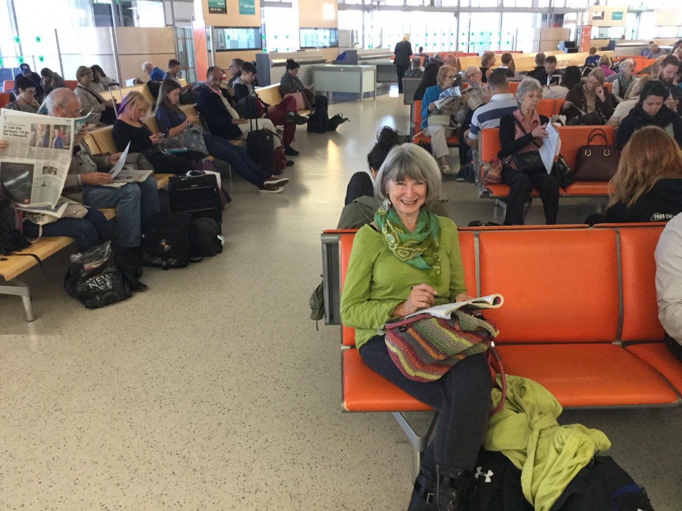 @Robert99 Sorry to hear you have to cancel. I hope you will still make the trip though and I'm sure your good lady will love it once she gets there. There's a jaw dropping Kodak moment around every corner. My wife had no interest in Scotch until 2011, the year we visited 22 distilleries. About half way in, she decided she might like to join in the tasting. She acquired the taste in nothing flat. Mostly she loves all the other things there are to explore over there. So, no hard sell required. She's ready to go. This will be our fifth trip over. Here she is eagerly awaiting the boarding call at the airport last time.