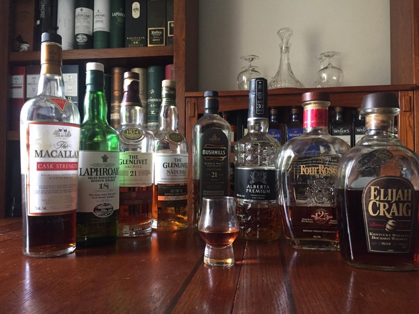 Had a couple of mates over for a few late afternoon drams. AnCnoc 22, AnCnoc 2000, Kilchoman 100% Islay, Miltonduff 22, Tomatin CS 18, Caol Ila DE, Uigeadail. Very pleasant.