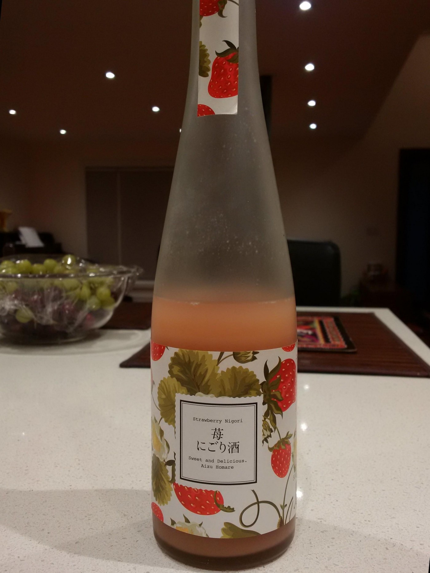 At the end of dinner they brought out this strawberry sake that he had brought and put in the freezer. It tasted a bit like a yoghurt drink.