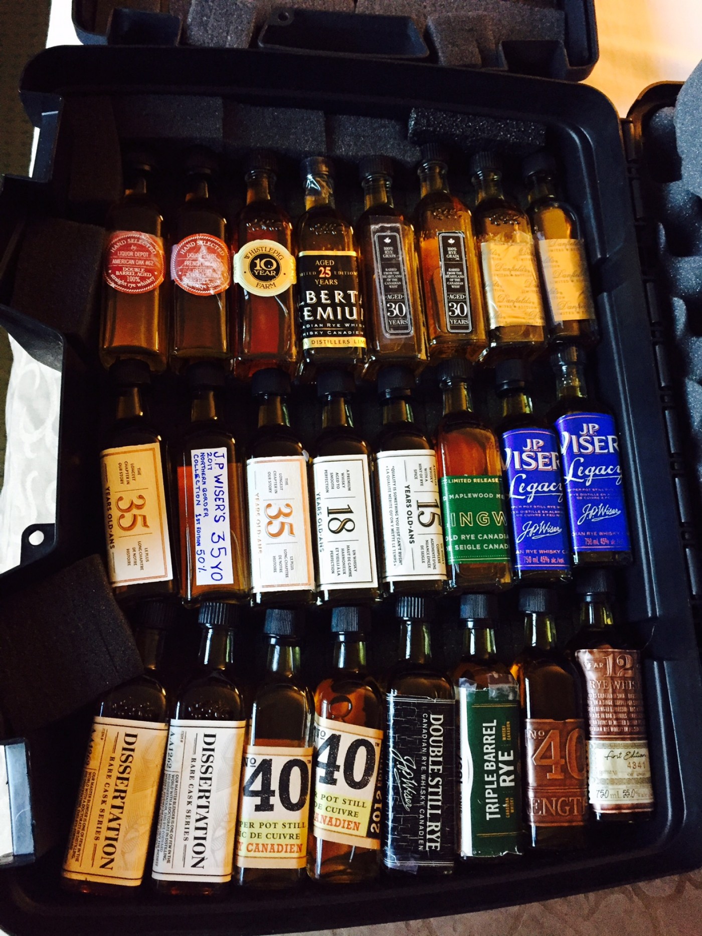 @Nozinan, the border guard was more concerned with me lowering my back window than with the gun cases, he didn't ask about the three lock boxes....it must be a common practice to transport scores of 60 ml whisky samples in gun cases. lol ...whoda thunk it? I can't wait to cross the border with you again!