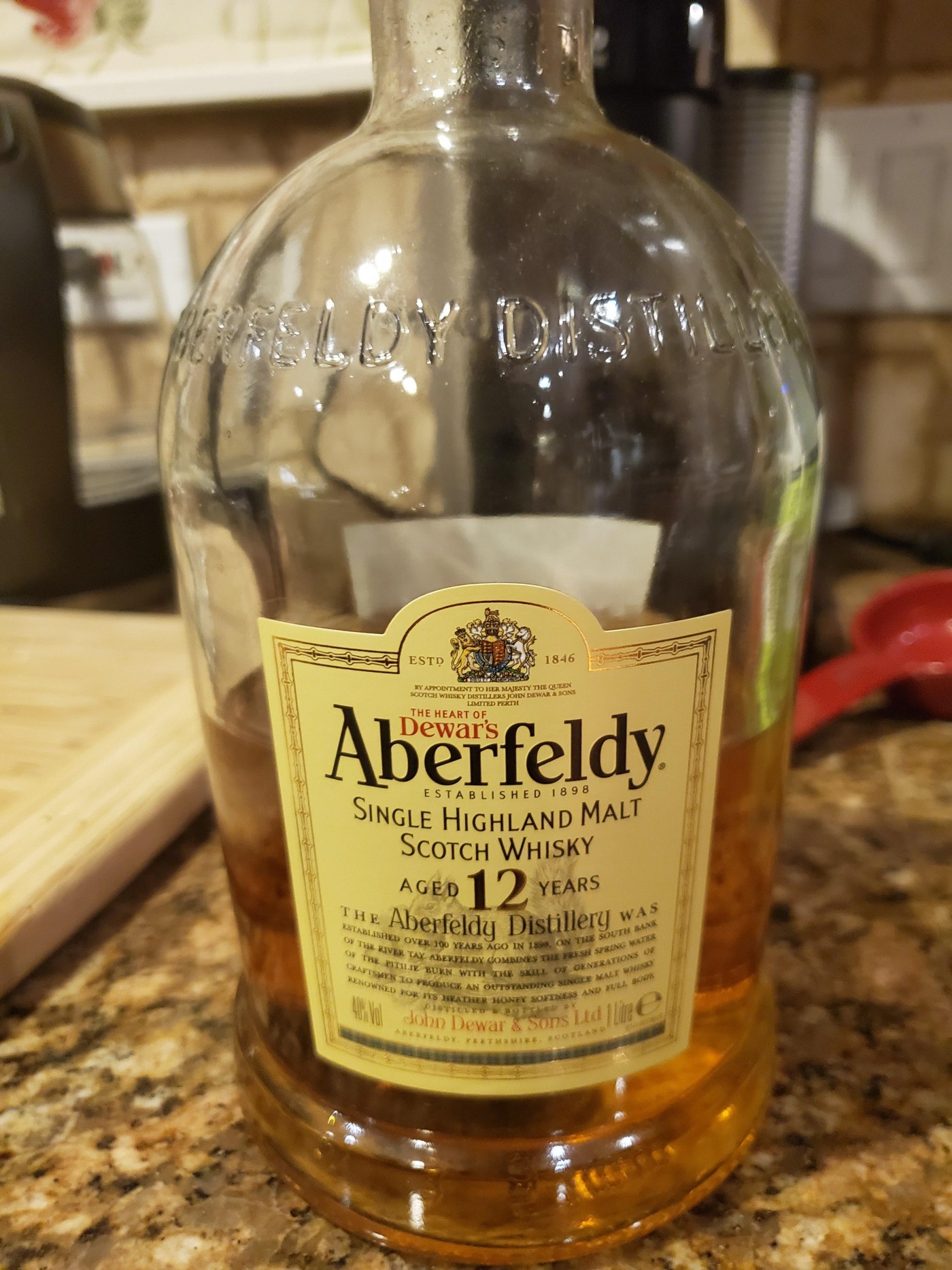 Aberfeldy 12 yr old, a gift from my father In law, it's about time I finished it, a great warming drink to accompany my coffee on a cool fall night.