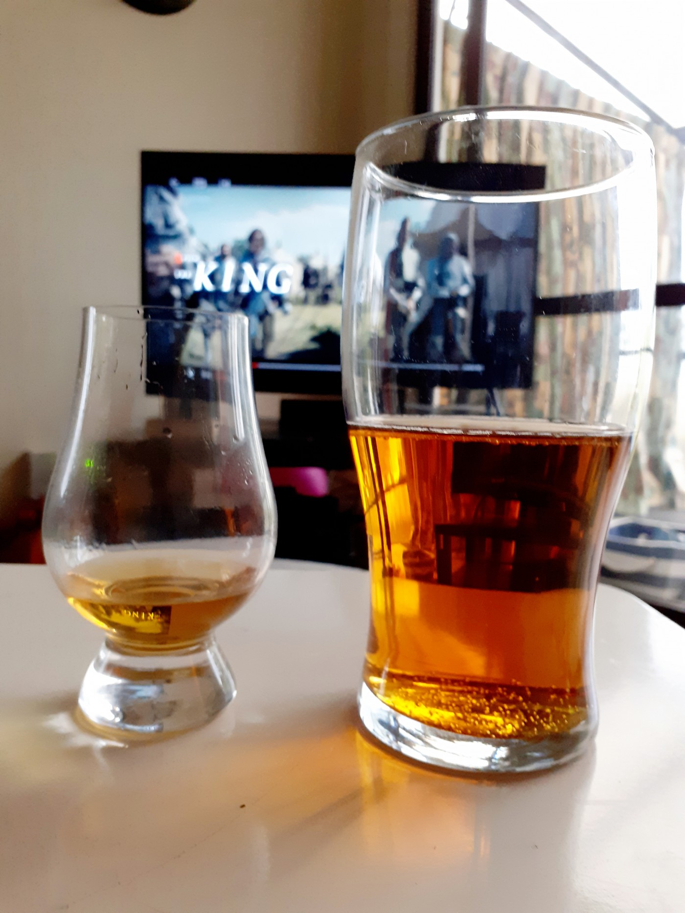 Tonight a London Pride ale and Benromach 10 100 proof. Ahh