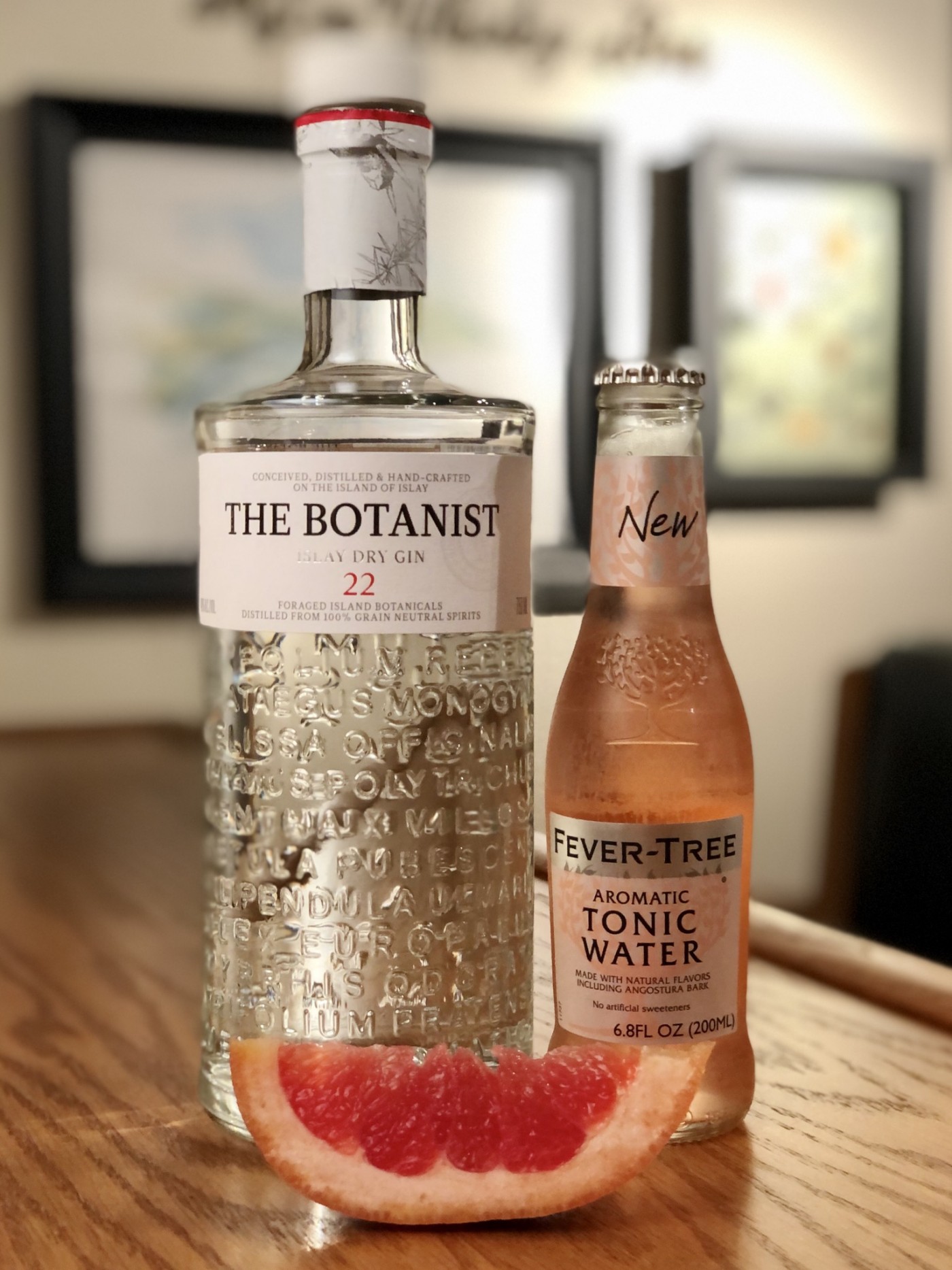 I forgot to post that before the Miltonduff, before dinner, I made my wife and I a Gin and Tonic using two parts The Botanist Gin and 4 parts Fever Tree Aromatic Tonic Water with a wedge of Texas Ruby Red Grapefruit as a garnish. A really nice variation of the traditional G&T.