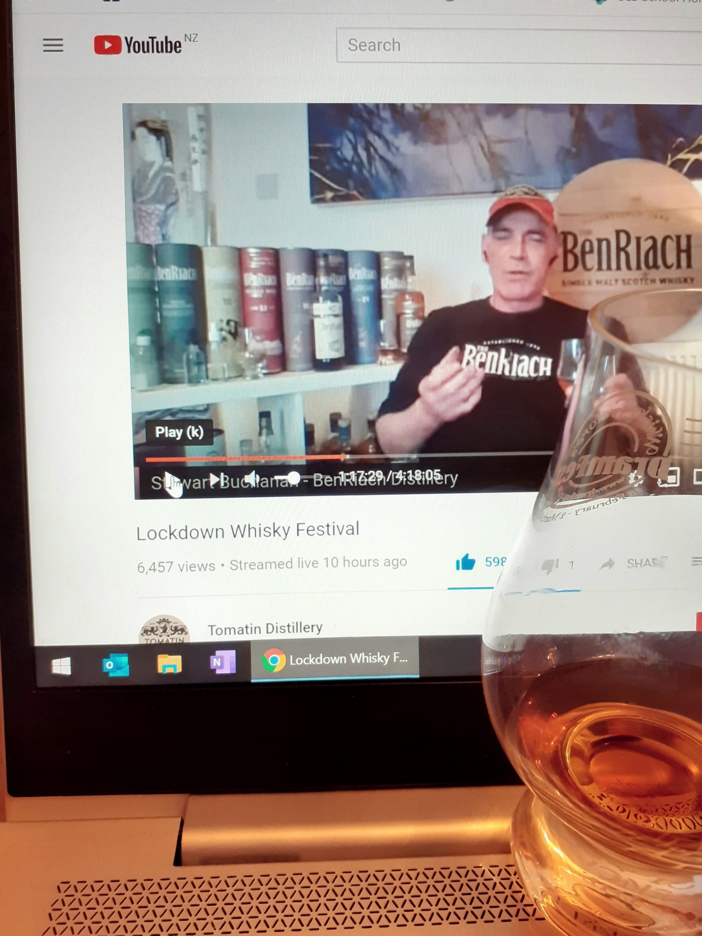 Having a bit of a catch up on the virtual Lockdown Whisky Festival from last night. I really enjoyed chatting to Stewart Buchanan at Dramfest so I'm having a BenRiach Peated Portwood 12 year old Single Cask as I watch