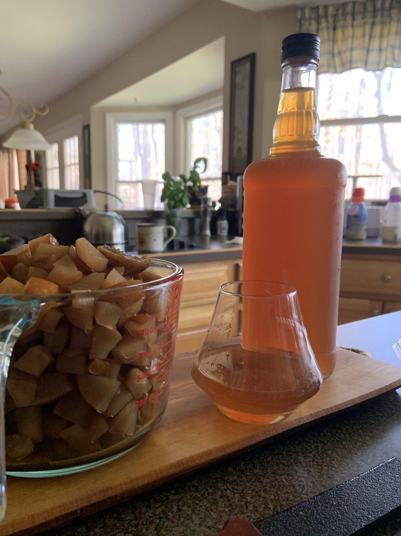 I’ve been infusing bourbon with pear, fig and vanilla for the last two weeks to try this Bourbon Negroni cocktail recipe I found.