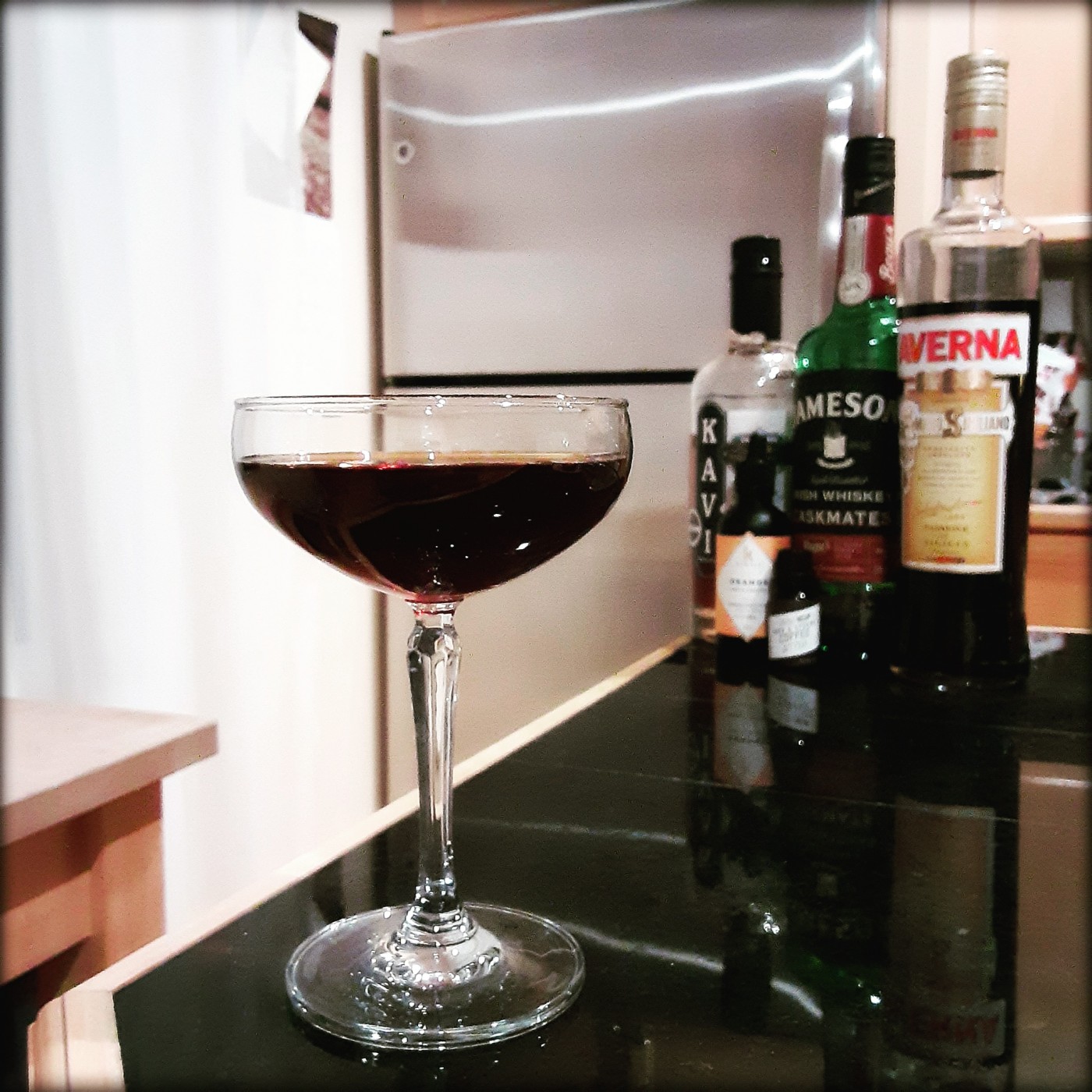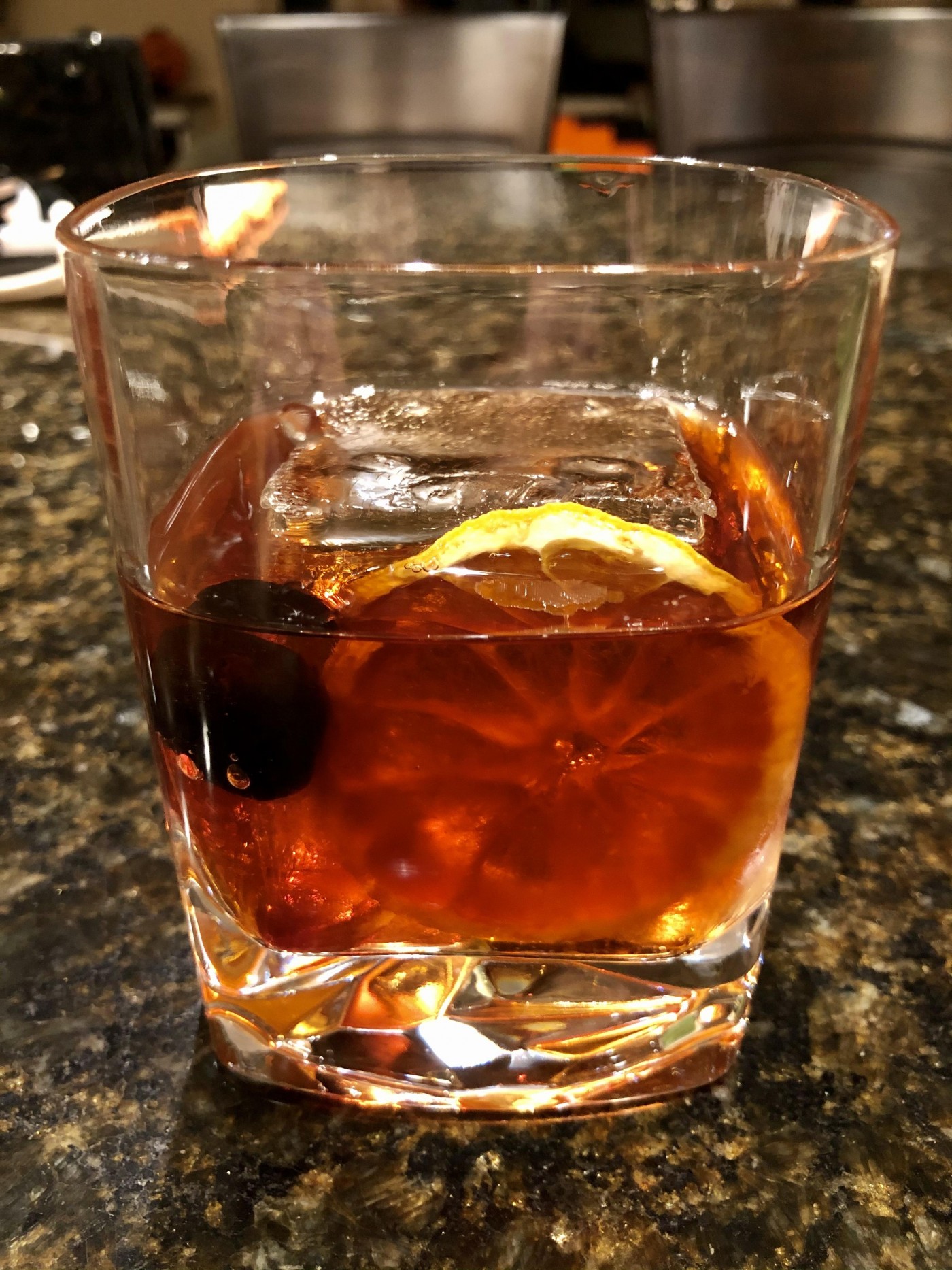 My wife and I are having Black Manhattan’s before dinner. (2oz Makers Mark 46, 1oz Amaro, 5 drops of orange bitters and 3 drops of Angostura bitters. Garnished with a Luxardo cherry and a dehydrated orange wheel.)
