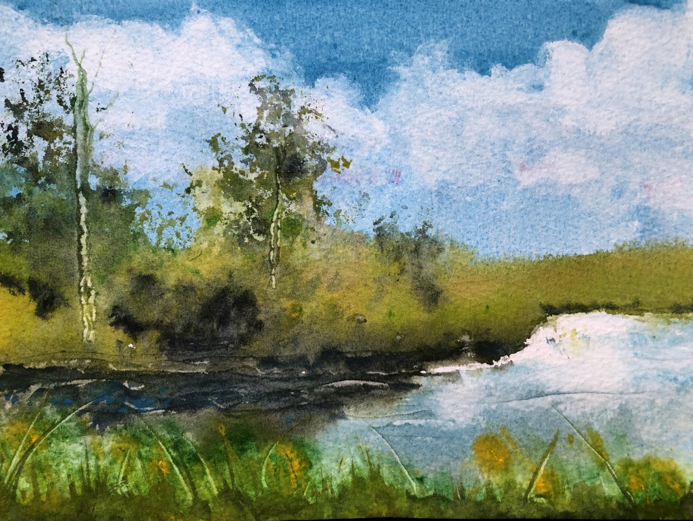 As a distraction I’ve taken up watercolor painting. My old father tells me, ‘Once you start painting you’ll never look at the world the same’ and he’s right. I walk around outside in all kinds of weather thinking, ‘Look at that cloud!’ or ‘The water is dark!’
