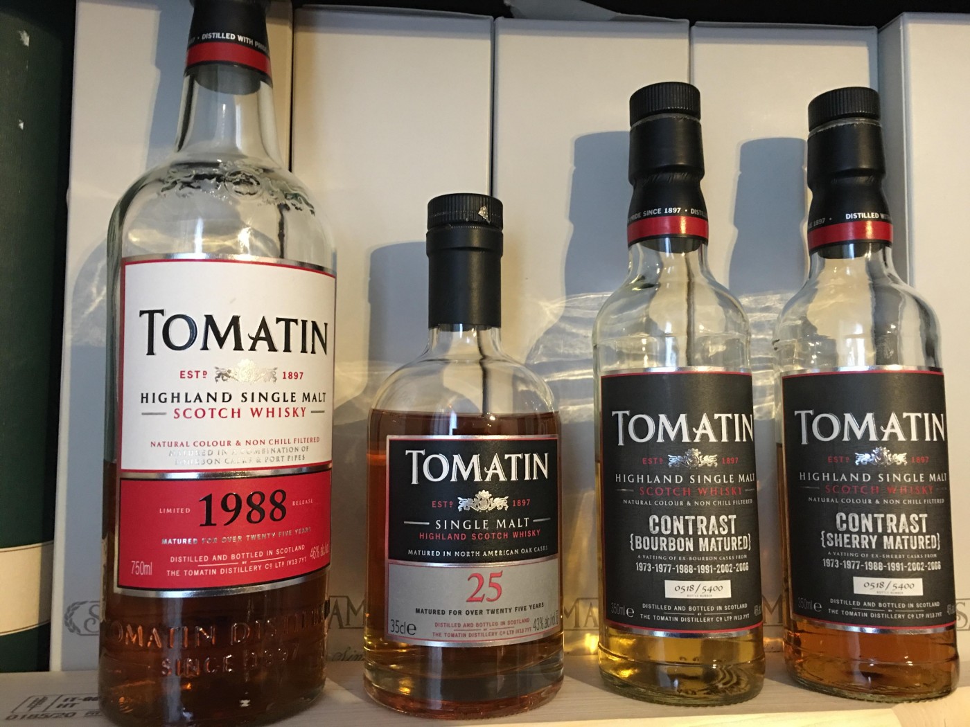 A Tomatin flight. Four different pours sitting for about 30 minutes, the room smells like raspberries, ripe honey dew melon, freshly sliced pears, honey....