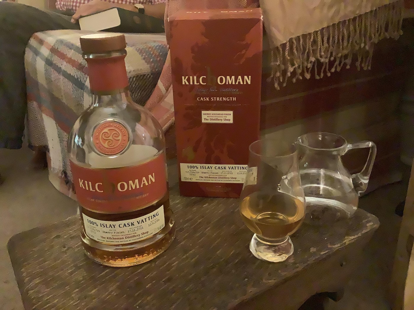 Kilchoman 4 yr from the distillery shop. To me Sherry cask loveliness although my father in law described it as a touch anaemic and thin. Each to their own as with all whisky. Cheers.