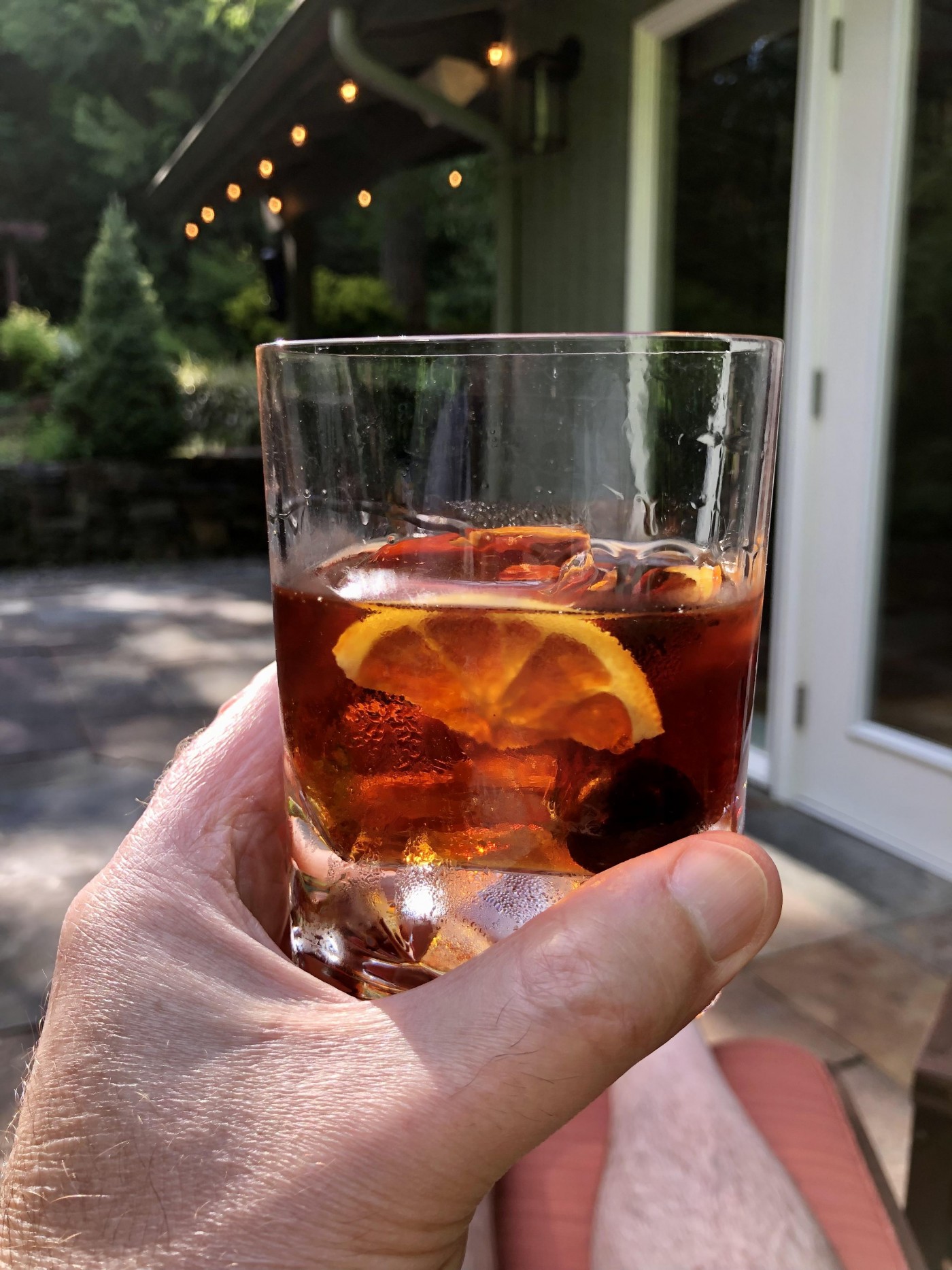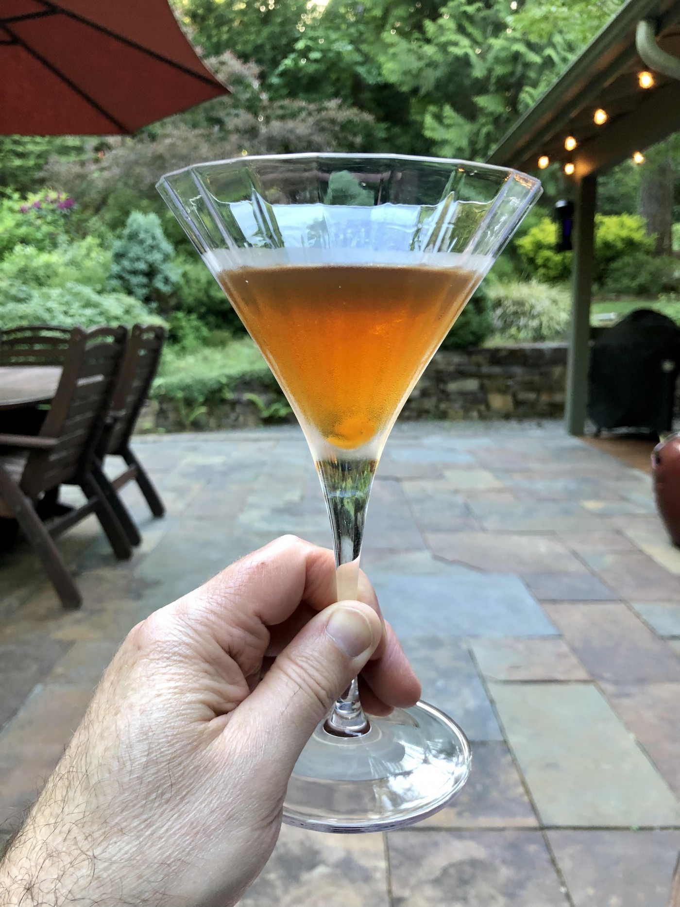 Tonight, having a Greenpoint cocktail on the patio before dinner.