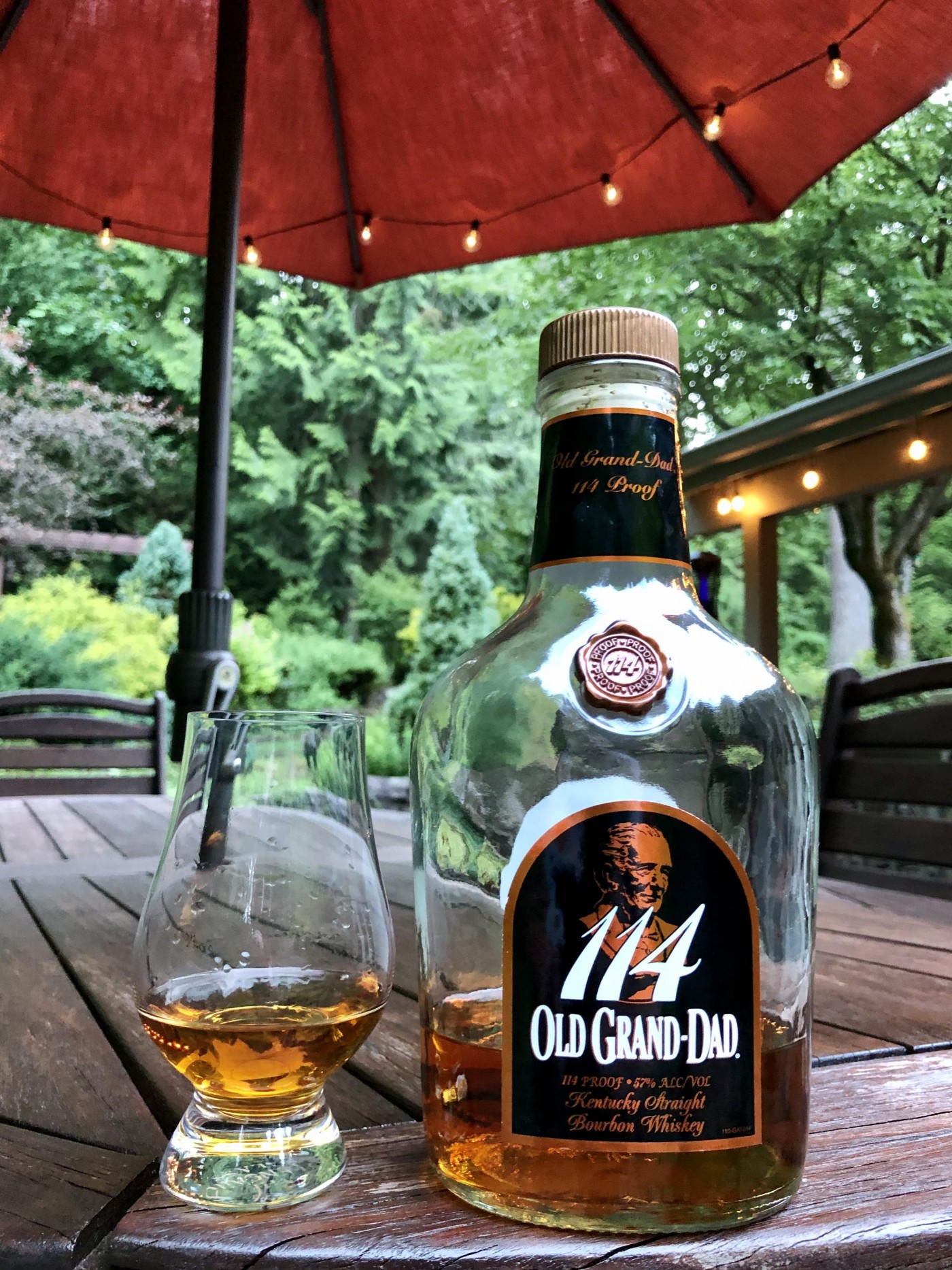 After finishing dinner and the E H Taylor, I was still in the mood for bourbon, so I’m sitting on the patio, listening to old ZZ Top albums and drinking a dram of Old Grandad 114. Life is good!