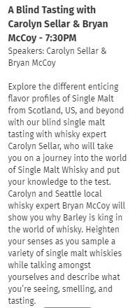 I had to crack up at the description for the Masterclass. Apparently, I'm a local whisky expert. It's on the internet, so it must be true. :-) What does that even mean? An expert on local whisky?