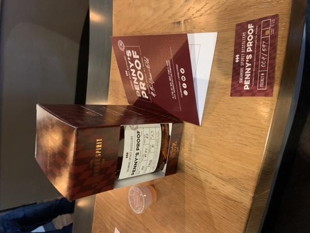 At 8:00 on Saturday morning, we got to go into the tasting room 15 at a time. Staff talked about the final Penney’s Proof release, then we got to try a sample, get our bottles and go into the visitors center where we could purchase a bottle of their just announced Maryland distilled Bottled in Bond.