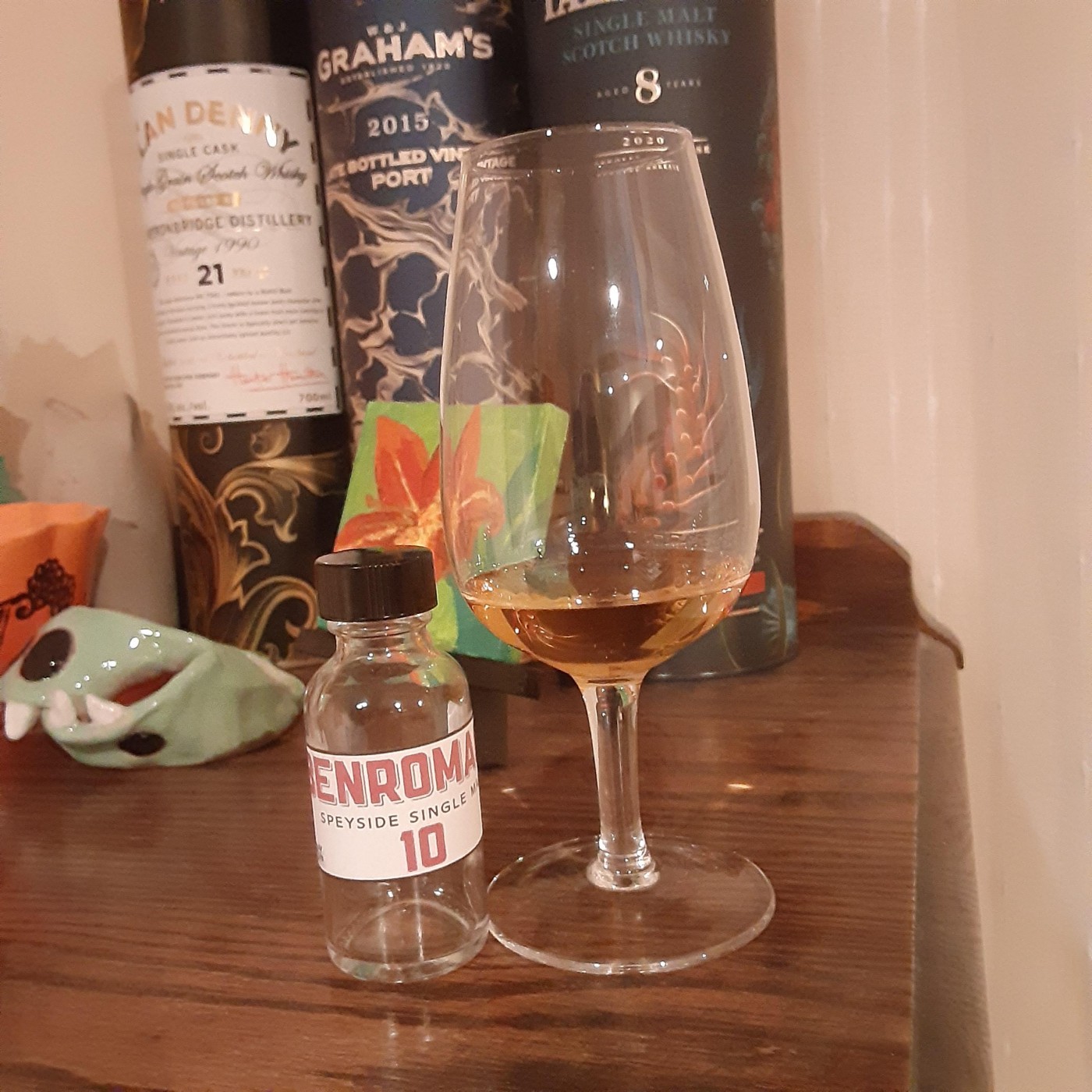 A load of miniatures of various blends Grouse, Whyte and Mackay and also a bottle of Glenlivet Founders reserve. The Glenlivet tastes very young. It's pretty unpalatable neat so I've been making Rob Roy's with it.