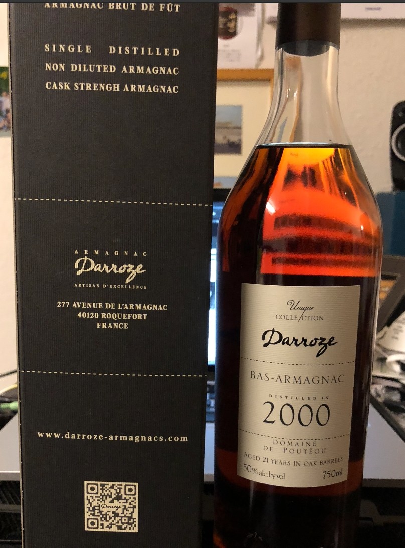 I won't go into great detail, since I did that in another post on another thread. But I did finally open the bottle of Darroze Vintage 2000 Armagnac, which arrived on Sunday. However, I will post the same photo here. Although there isn't a glass in the photo, I can promise you I did open it and I am enjoying my first dram.