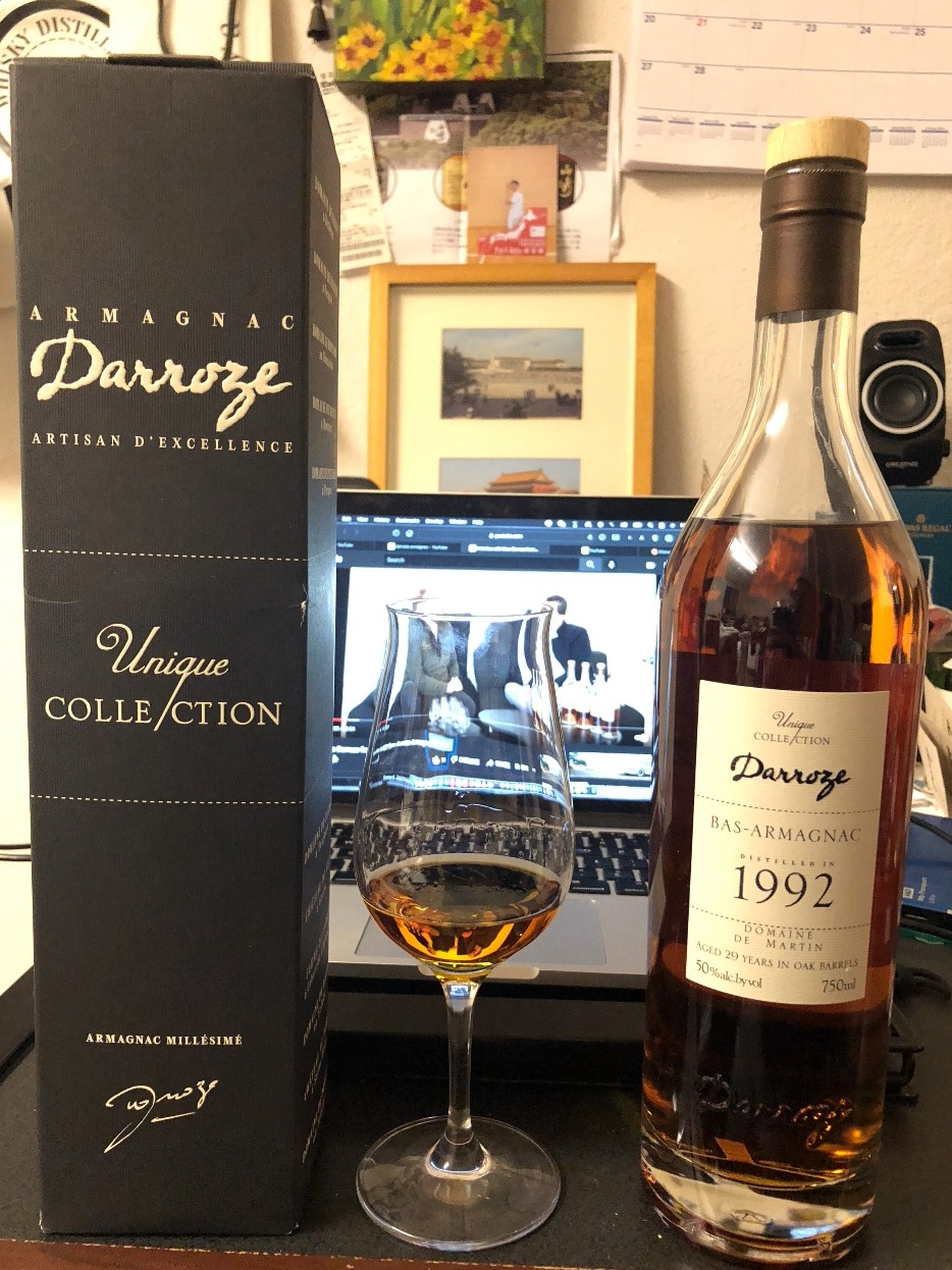 So, I have opened the Darroze 2000 Millésime (vintage) Domaine de Poutëou (21yo, 50% abv), and after that I opened the 12yo Darroze (43% abv). Tonight, I have opened and poured myself a small glass of Darroze 1992 Millésime Domaine de Martin (29yo, 50% abv).