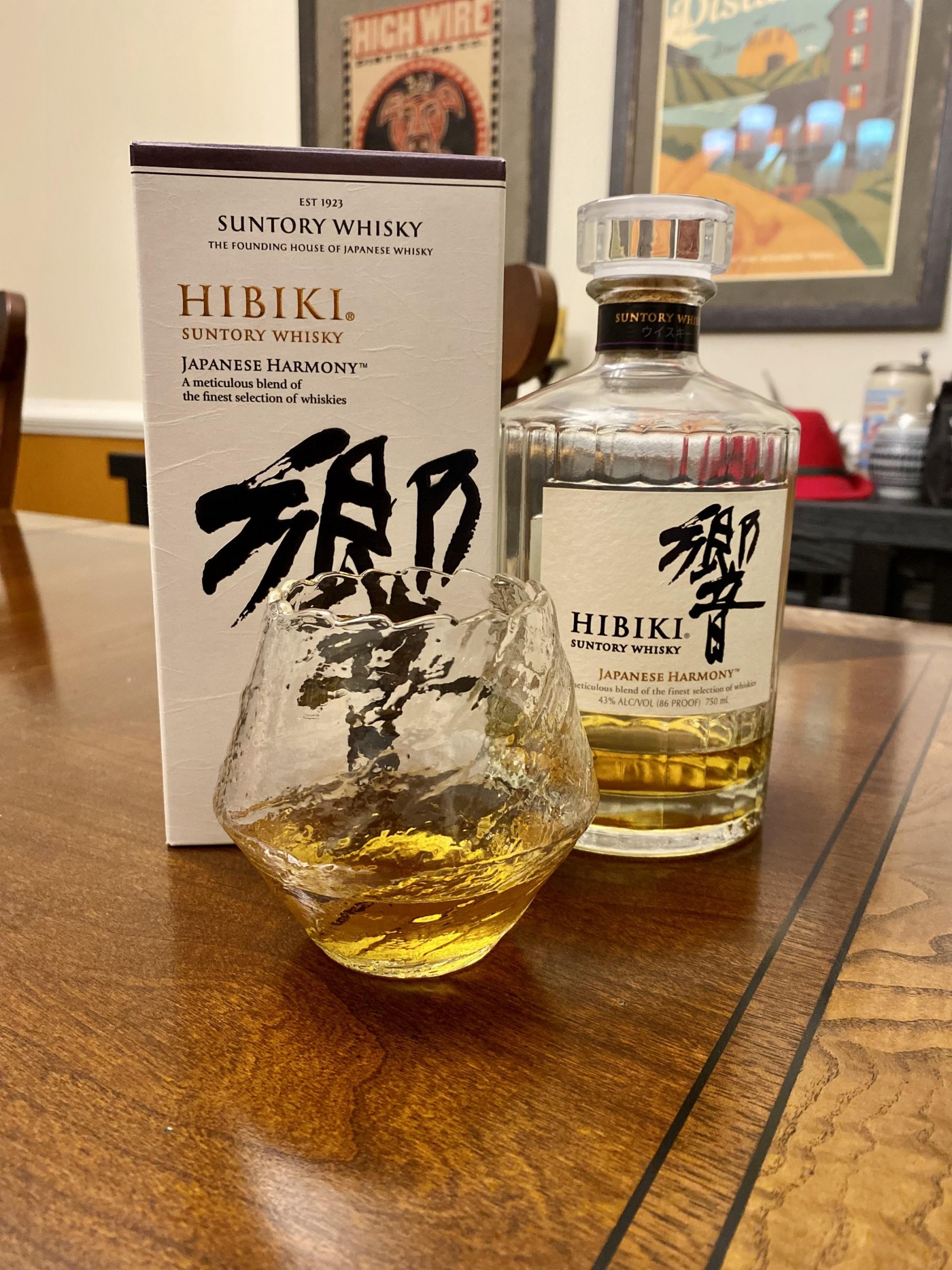 Decided to break in a Christmas gift I received from my youngest (he’s 21, OMG!) this Christmas. He got me this exquisite Japanese Whisky glass. Poured myself a dram of the Hibiki Japanese Harmony. It’s been a long week and this was a nice way to cap it off! Slainte!