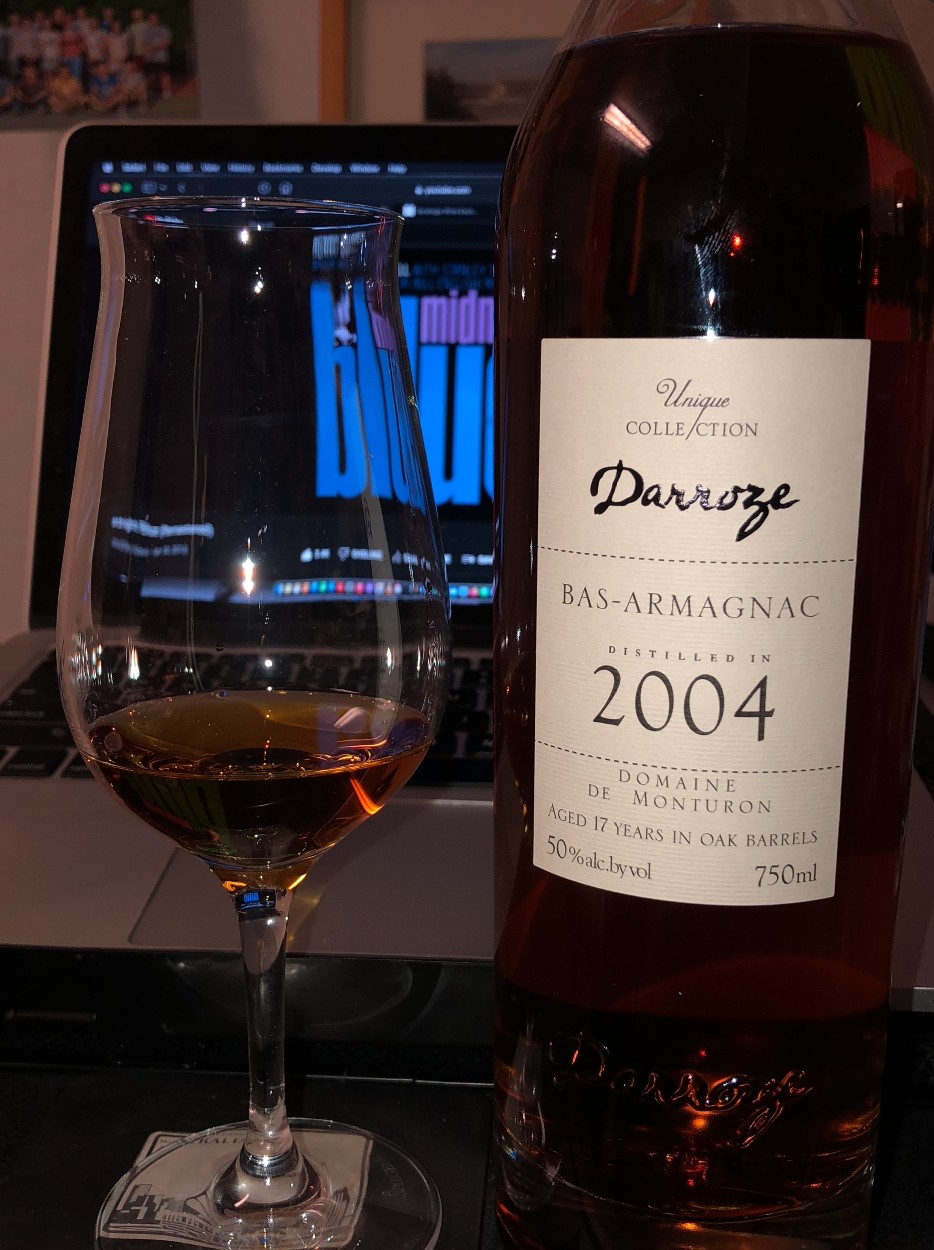 Well, this came in last Saturday. I just opened it, so what I am about to enjoy is the first pour. Darroze Domaine de Monturon 2004, a 17yo at 50% abv, First impression, my nose is very very happy....I look forward to the development. I decided to treat myself, as if I needed a reason, a pour tonight after organizing my parents' tax docs for their CPA.