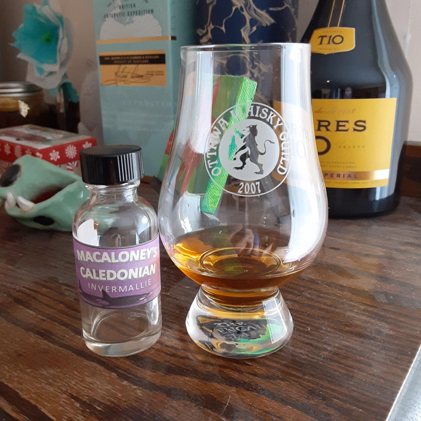 Macaloney's Invermallie @ 46% ABV, aged in a Recharged Portuguese Red Wine Barrique (Cask 44); another of my OWG Christmas Samples. Not sure I really like this one...