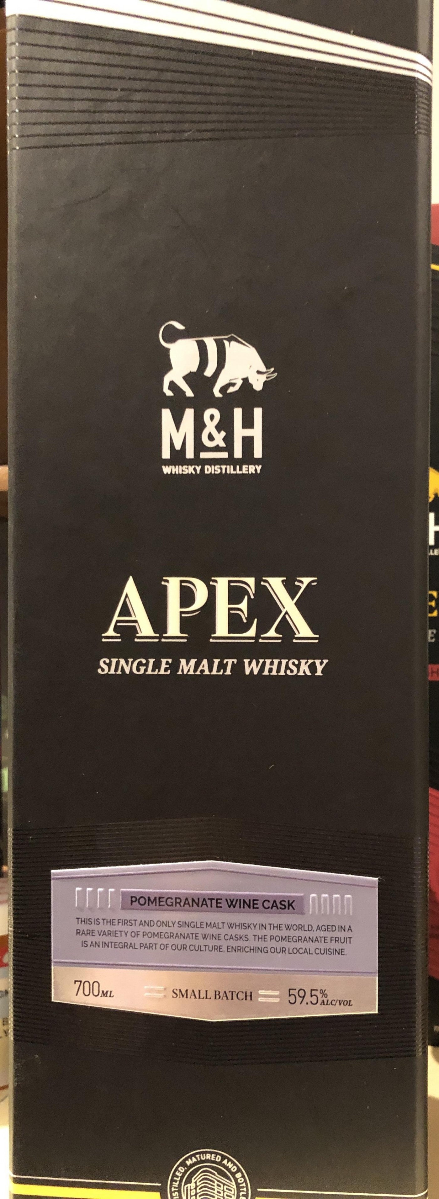 To celebrate, and also because I was preparing a sample, I poured a half ounce of Milk & Honey Apex series pomegranate wine cask finish, batch 8. At 59.5% it’s no shrinking violet. With a little water and the Ashok Manoeuvre, this 3 year, 1 1/2 month old CS beauty really shines.