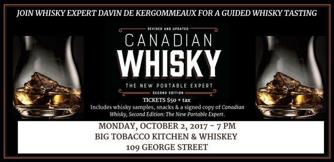 Tickets are $50 and for that you get to listen to whatever Davin has to say, taste some whisky, have some snacks, as well as get a signed copy of the book (the second edition of 'Canadian Whisky: the Portable Expert').