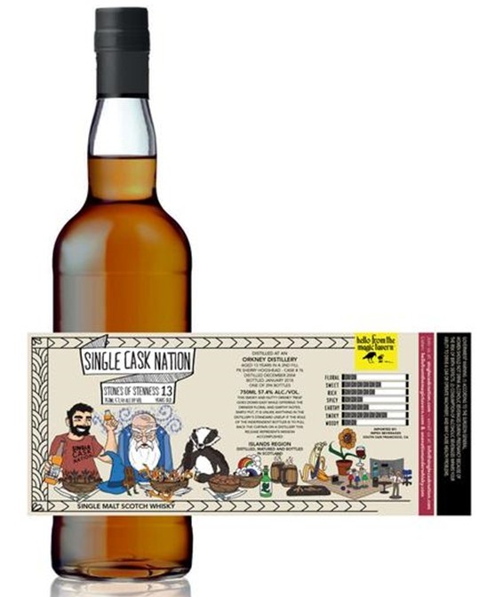 My latest acquisition pales in comparison, but I'm excited about it. Single Cask Nation released a 13 year, heavily peated, heavily sherried Orkney Island single malt. They said that they were not allowed to name the distillery, but it was one of the two distilleries on Orkney and it wasn't named Scapa. :-) Distilled Dec. 2004, Bottled Jan. 2018 from a 2nd fill ex-Pedro Jimenez sherry hogshead (outturn was 294 bottles). I'm excited because I haven't owned a Highland Park in a while and with it being heavily peated from a single PX sherry cask, I knew I wanted a bottle. Also, the label art is pretty cool as well.