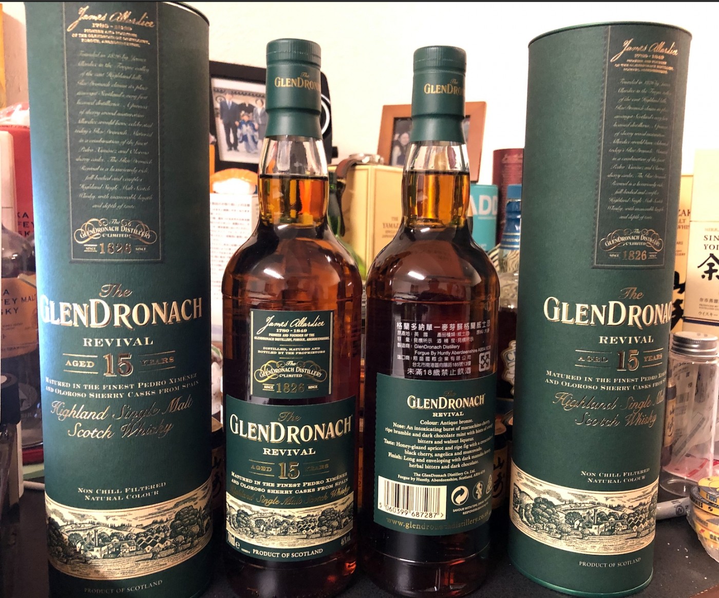 In Taipei, I picked up two bottles of the 2018 release of the Glendronach 15yo Revival. I also went to one of the Kavalan show room stores, and picked up three 50ml bottles of the (going left to right in the photo) SMW "Concertmaster" ABV 40%; SWM Sherry Oak ABV 54%; SMW Ex-Bourbon Oak ABV 54%. Although they are not truly bottles, they are worth mentioning.