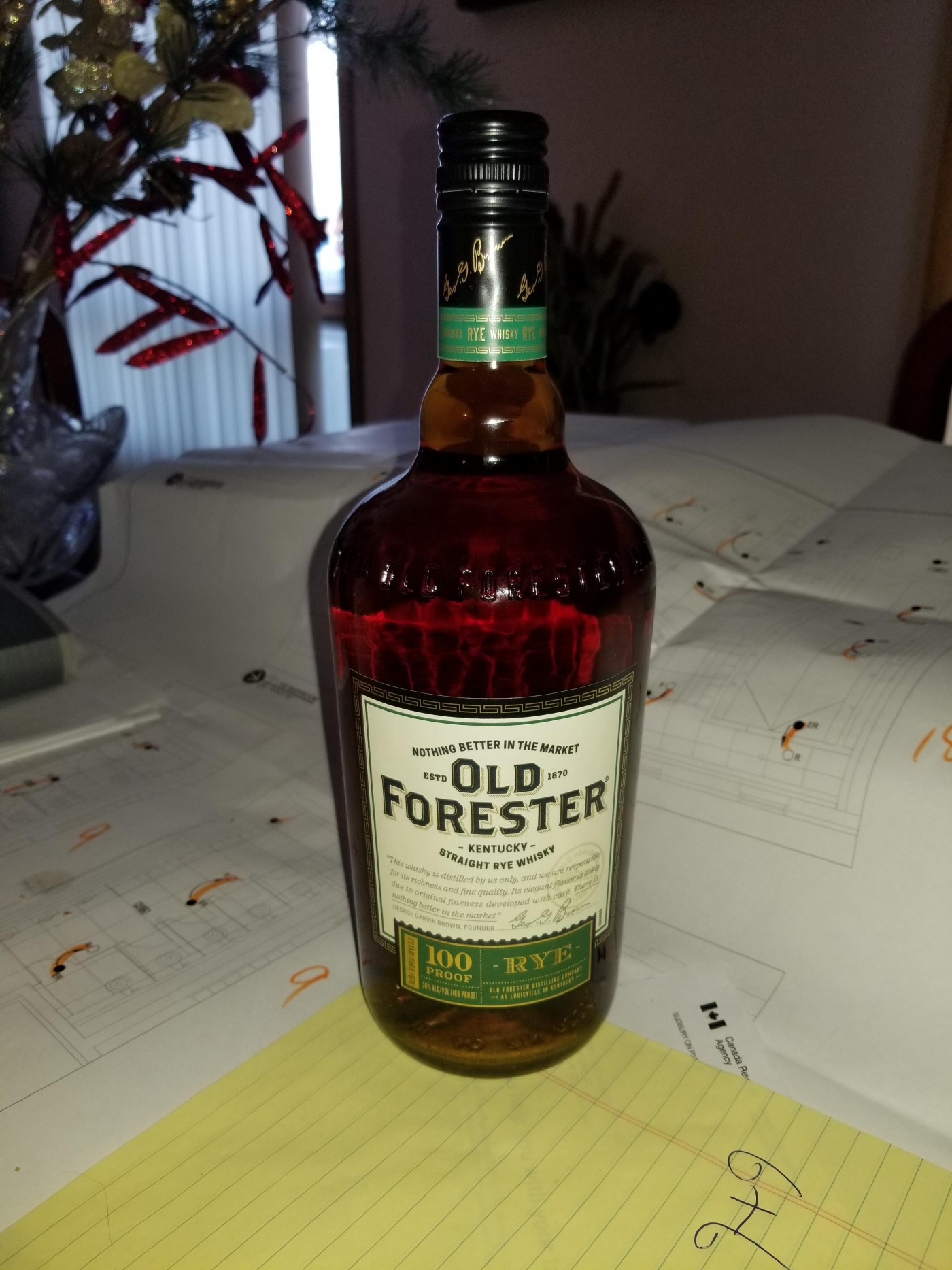 A friend brought me an Old Forester Rye, 100 proof from. 1 Liter bottle for $40 Canadian, all in. An amazing Rye for the money. Would grab a couple more of these if given the chance.
