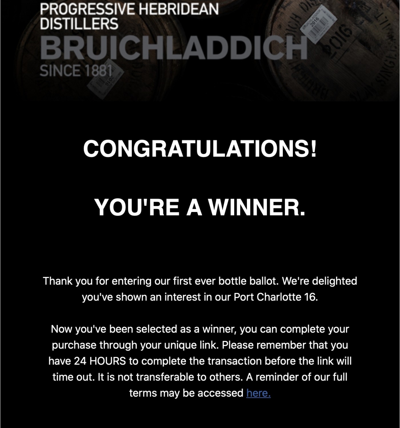 Well, I just bought a bottle that I did not think I would get an opportunity to get and then this email showed up in my inbox today. So, I have purchased the Bruichladdich Port Charlotte 16 Feis Ile 2020: Digital Exclusive.