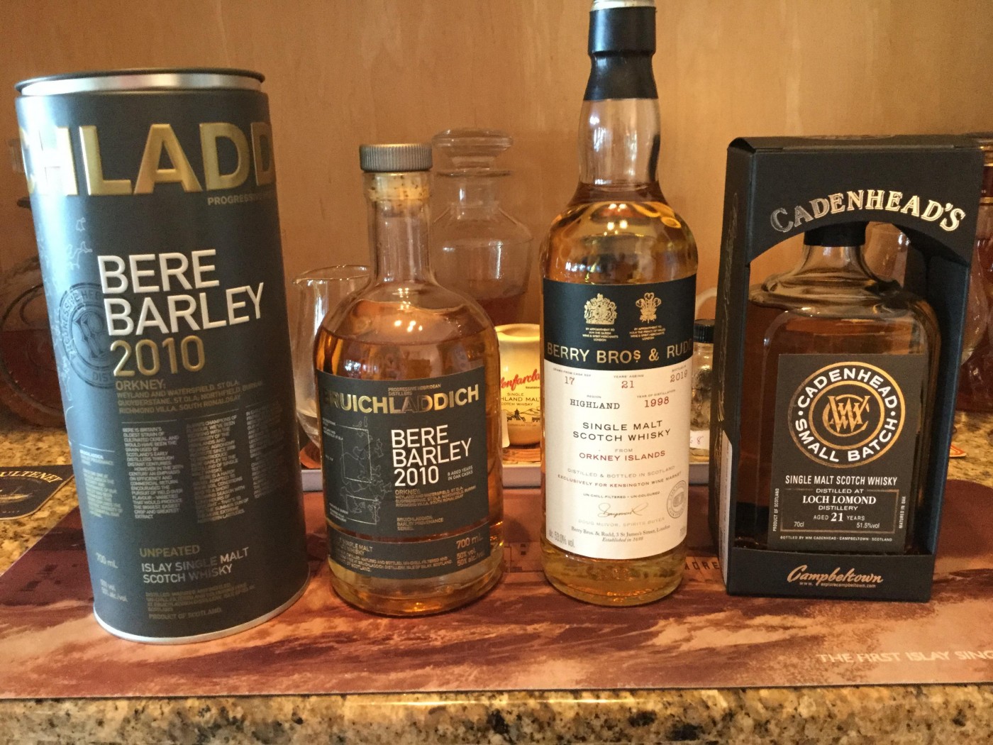 Bought these three at pretty decent sale prices recently. They just arrived yesterday and so far I have had very small tastes of the Bere Barley, which might take some getting used to, and the Berry’s Orkney, which is a 21 year old Highland Park at 53%ABV. It’s unlike any Highland Park I’ve ever had, much better IMO. The Cadenhead 21 year old Loch Lomond is 51.5% and due for a taste later today.