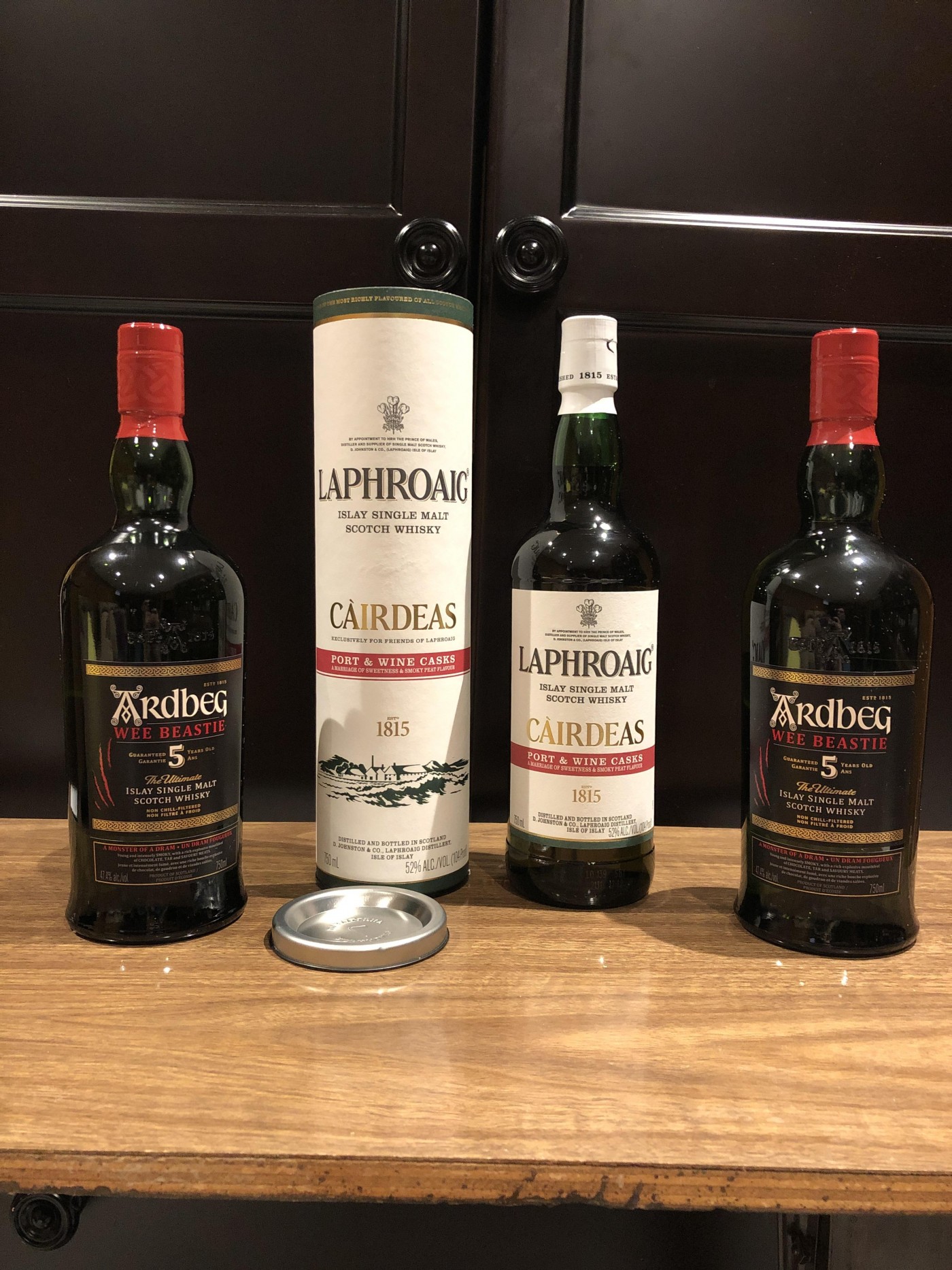I finally saw a bottle of the Ardbeg 5yo Wee Beastie on the shelf. It has at long last shown up on shelves in my area at a cost of $44.99. So, I bought the only two they had! I cracked it open last night and did a side by side comparison between the 5yo and two different batches of the 10yo (currently $53.99 for me locally). I have a “not-so-great” 10yo that my wife didn’t like at all. It had too much lemon up front and seemed thin. The 5yo in comparison is very fruit forward. And it seemed every bit as complex as the “not-so-great” 10yo. But the “very-good” batch of 10yo really showed both up. It is very dark, rich, and thick.