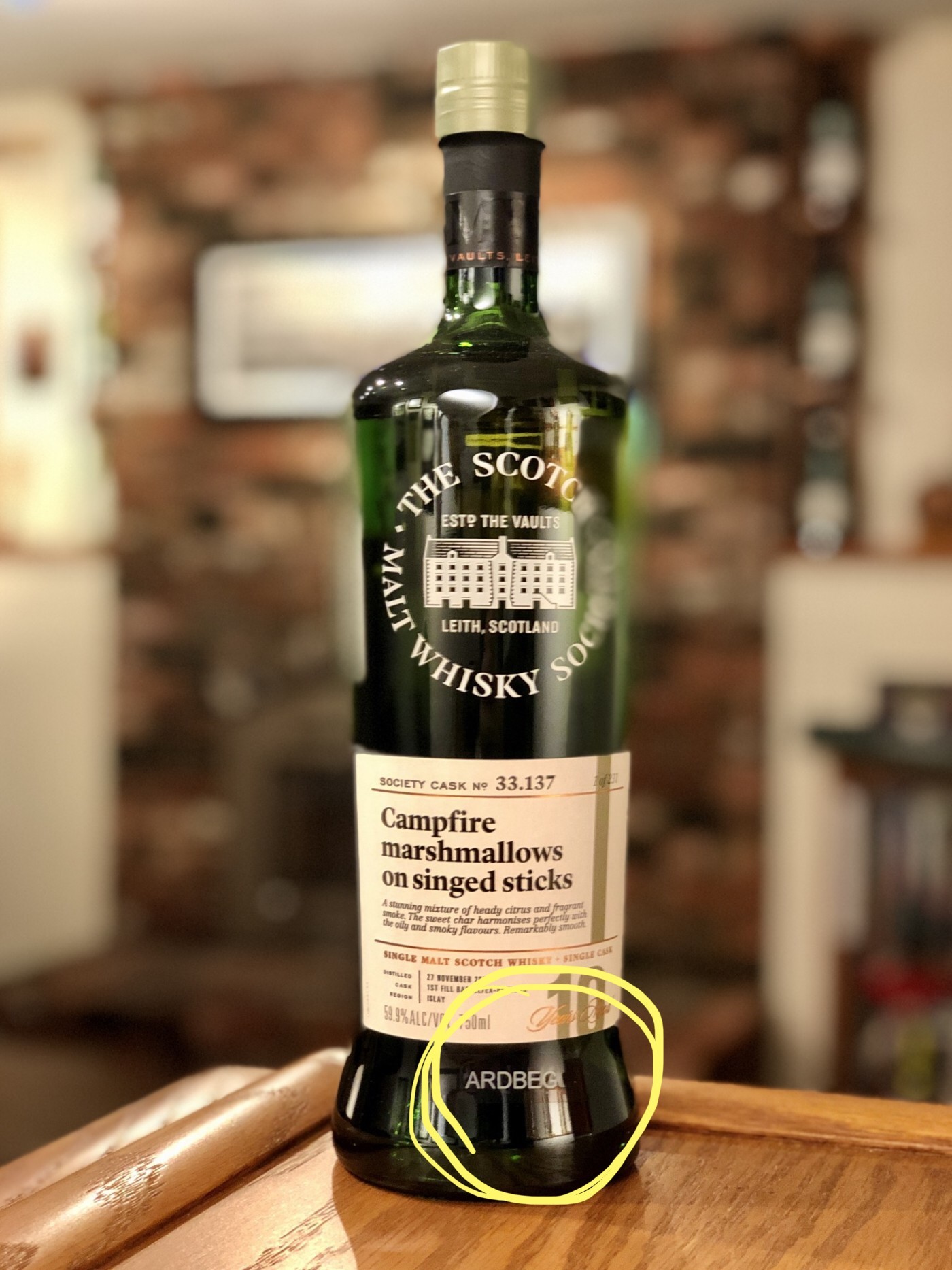 Ardbeg SMWS 33.137 (10 year - Nov. 27th, 2008) "Campfire marshmallows on singed sticks" from a 1st-fill ex-bourbon barrel - 59.9% ABV.