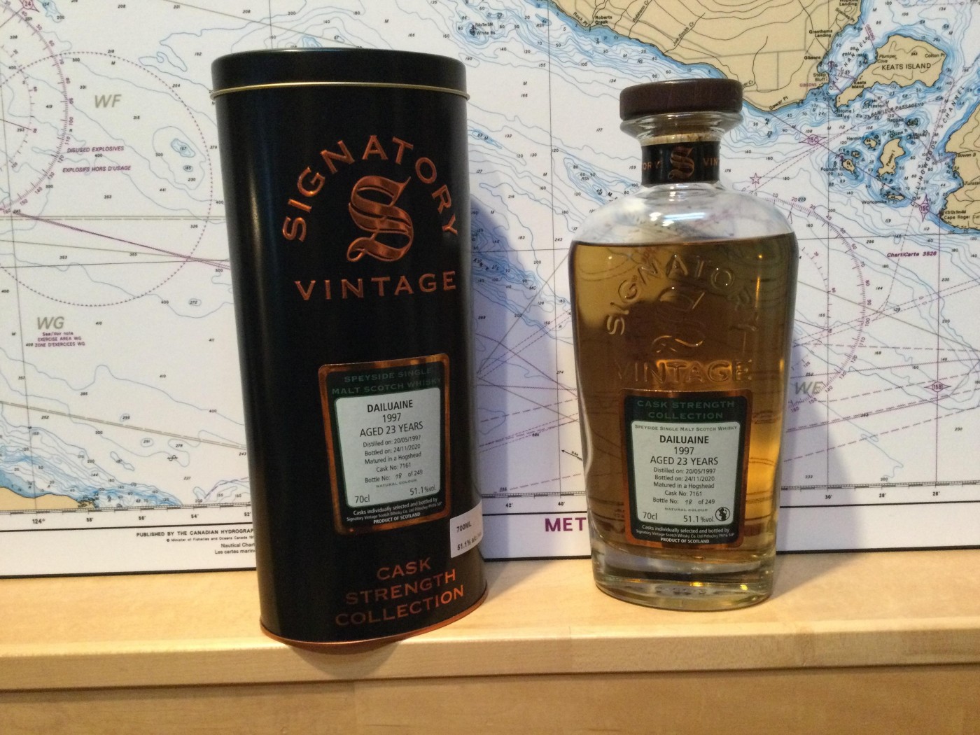 This 23 year old Signatory Dailuaine arrived the other day after a long shipping delay due to the flood damage to roads and bridges in BC. I’ve only had a small taste but I’m already wishing I’d got two.