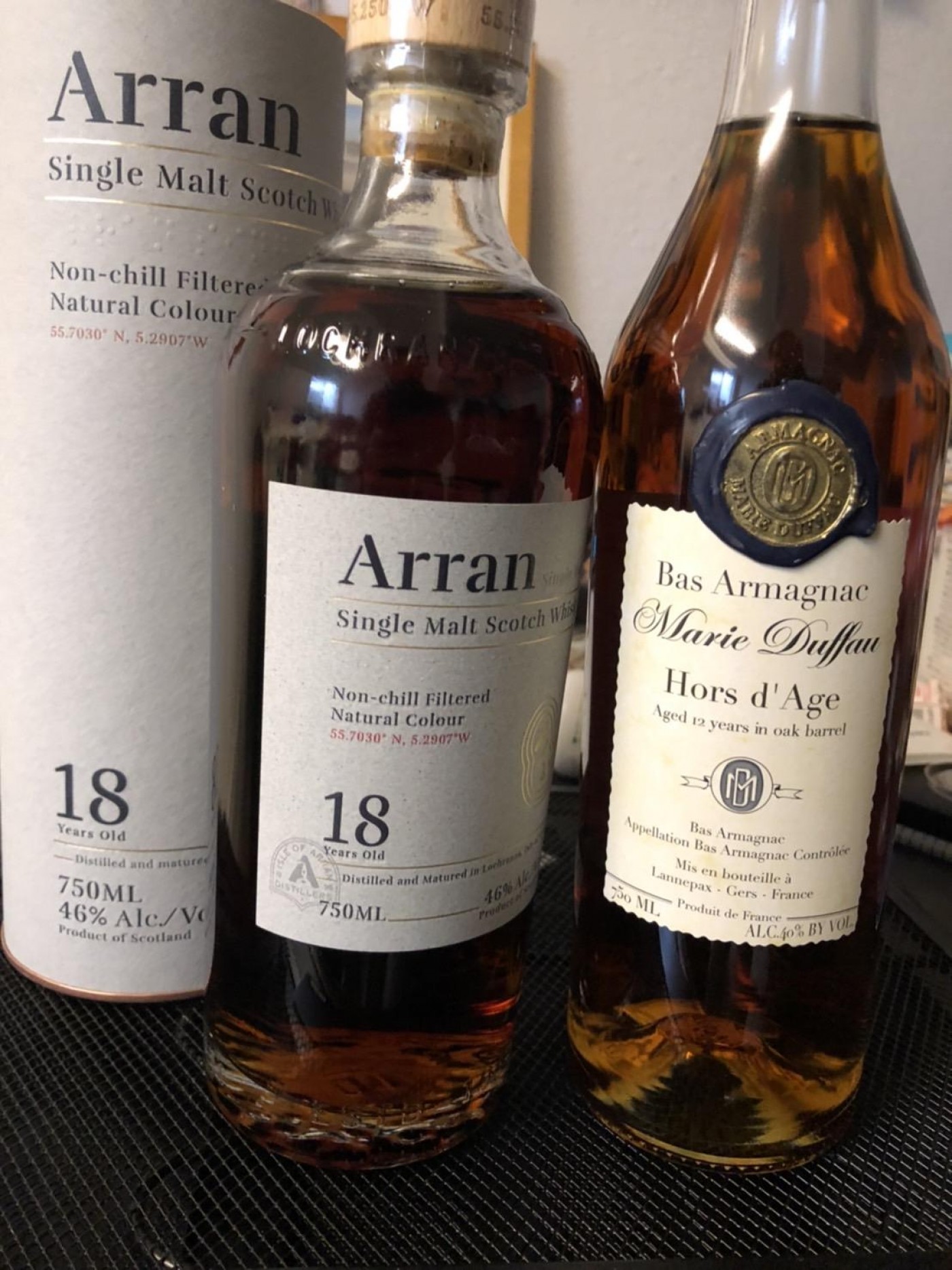 Some friends of mine, located in Taiwan, have been encouraging me to try Armagnac, so I decided to splash out at get a bottle. As for the Arran 18yo, it just sounds good. HA! Now, some of you might be asking, "What about the Italian brandy you mentioned in an earlier post?" Well, the supplier said they are having difficulty moving some of the purchases around (supply chain/logistics issues). So, that motivated me to buy what you see below.