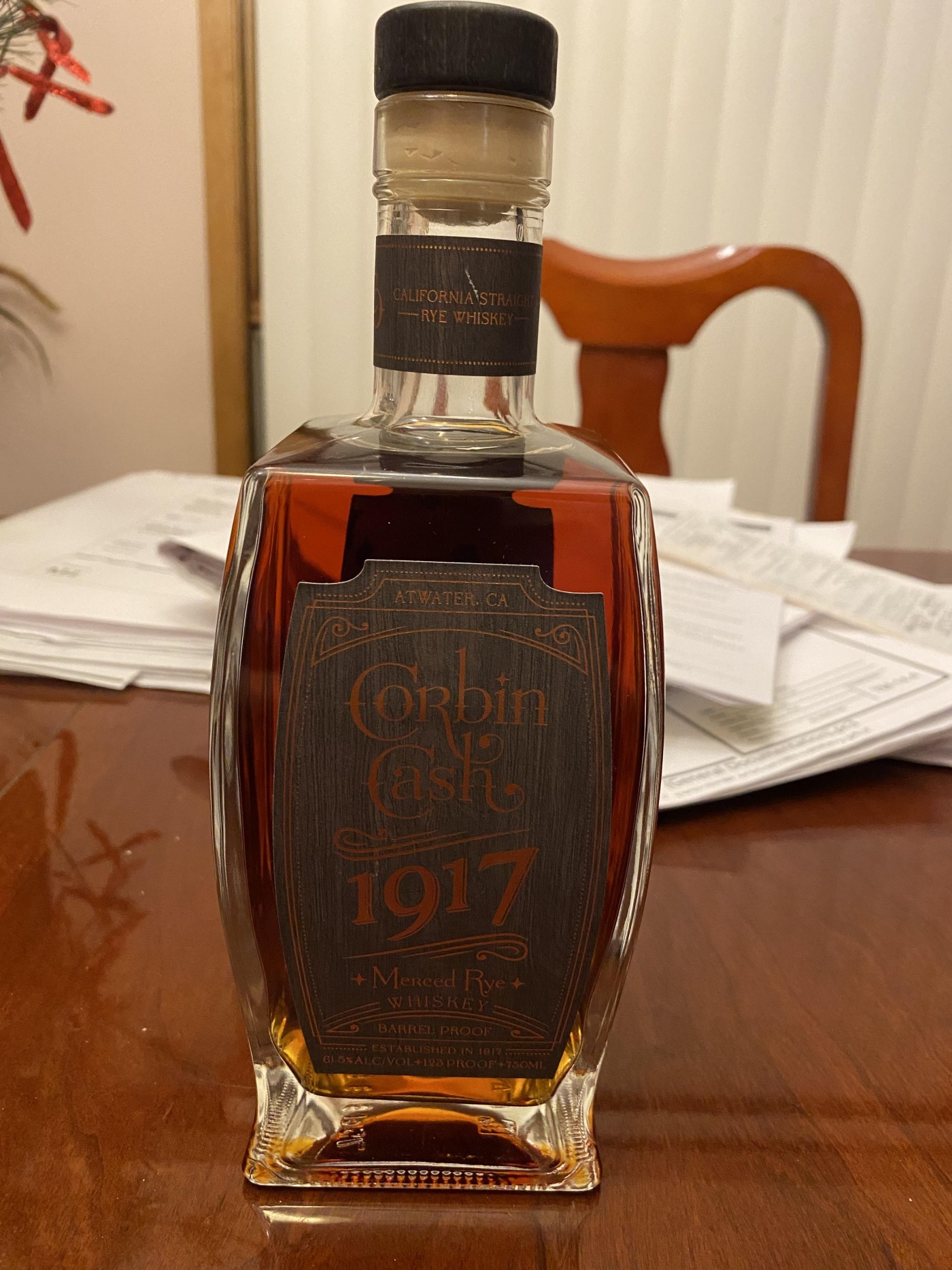 A friend muled this Corbin Cash 1917 California Straight Rye to me as well as one for himself. California to Minnisota to Fort Frances and then to Hamilton. 100% Merced (?) Rye at 123 proof