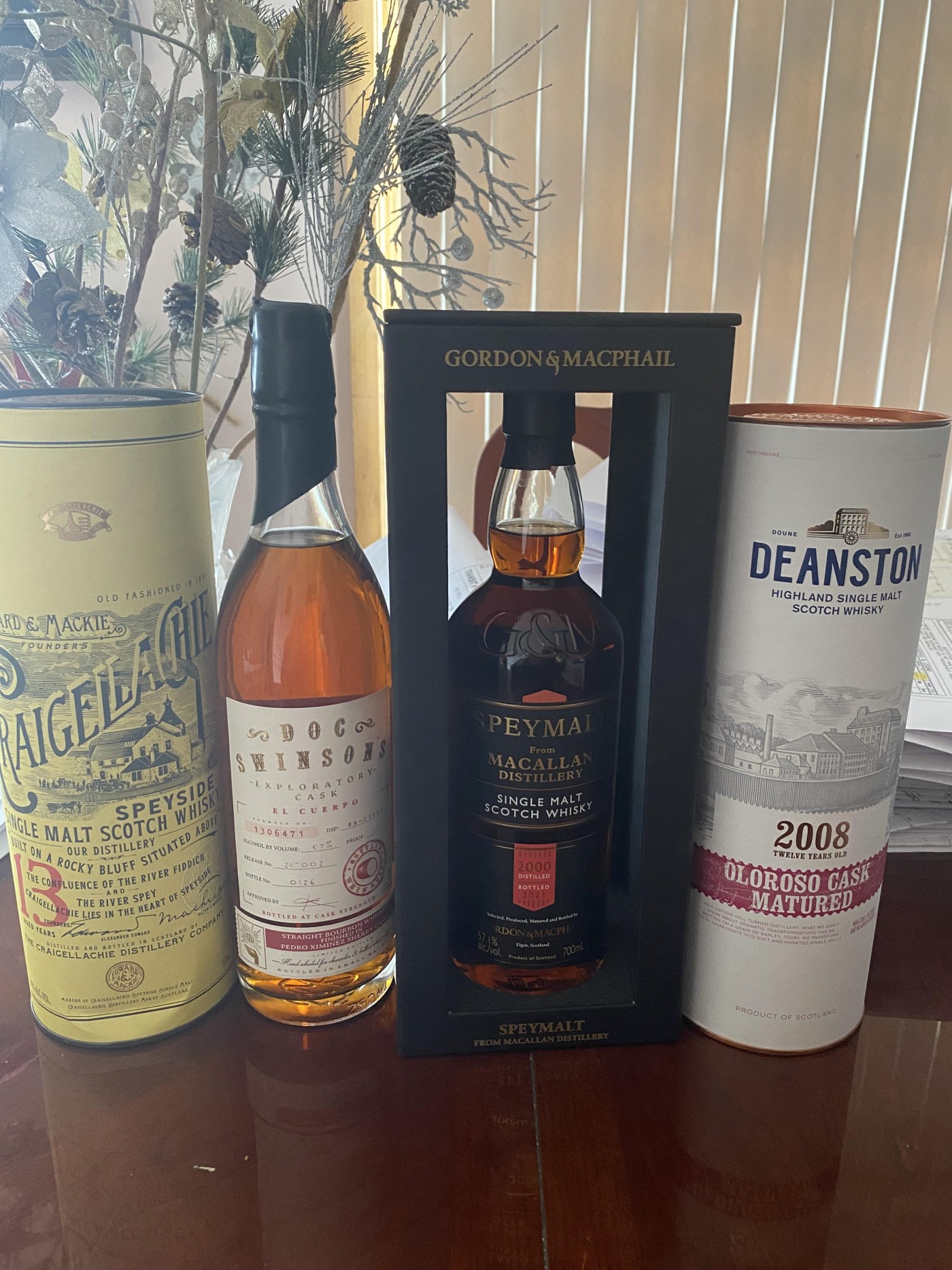 I recently took advantage of a flyer sale as well as an across the board 10% disount at an online store out west. The Craigellachie 13 was $46 cad on a flyer, The Deanston 12 Oloroso Cask was $108 Cad. The Doc Swinson's El Cuerpo PX Finished MGP Bourbon was a replacement for a triple cask bottle they broke in the warehouse and had none left. The Speymalt 2000/2021 Macallan Sherry cask 57.1% is a pure Tater purchase.