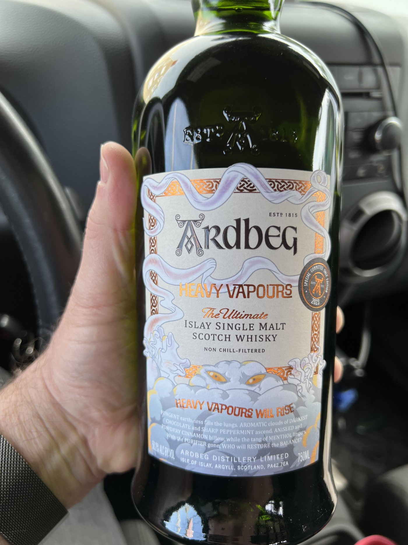 Ardbeg Heavy Vapours 46% (L2470059 06/12/2022; 011022) – Why? – This was the bottle that caused me to spend over $1000 today. I am extremely excited to try it. It is Ardbeg without the use of the purifier in the distillation process. In an interview Dr. Bill said he took off the purifier just to see what it would do to the spirit (to see what the purifier actually does in the distillation process). It sounds like this was all distilled 12 years ago. He said that the process of taking it off was so laborious that they will almost certainly never do this experiment again. So, I have to try it. And now I will.