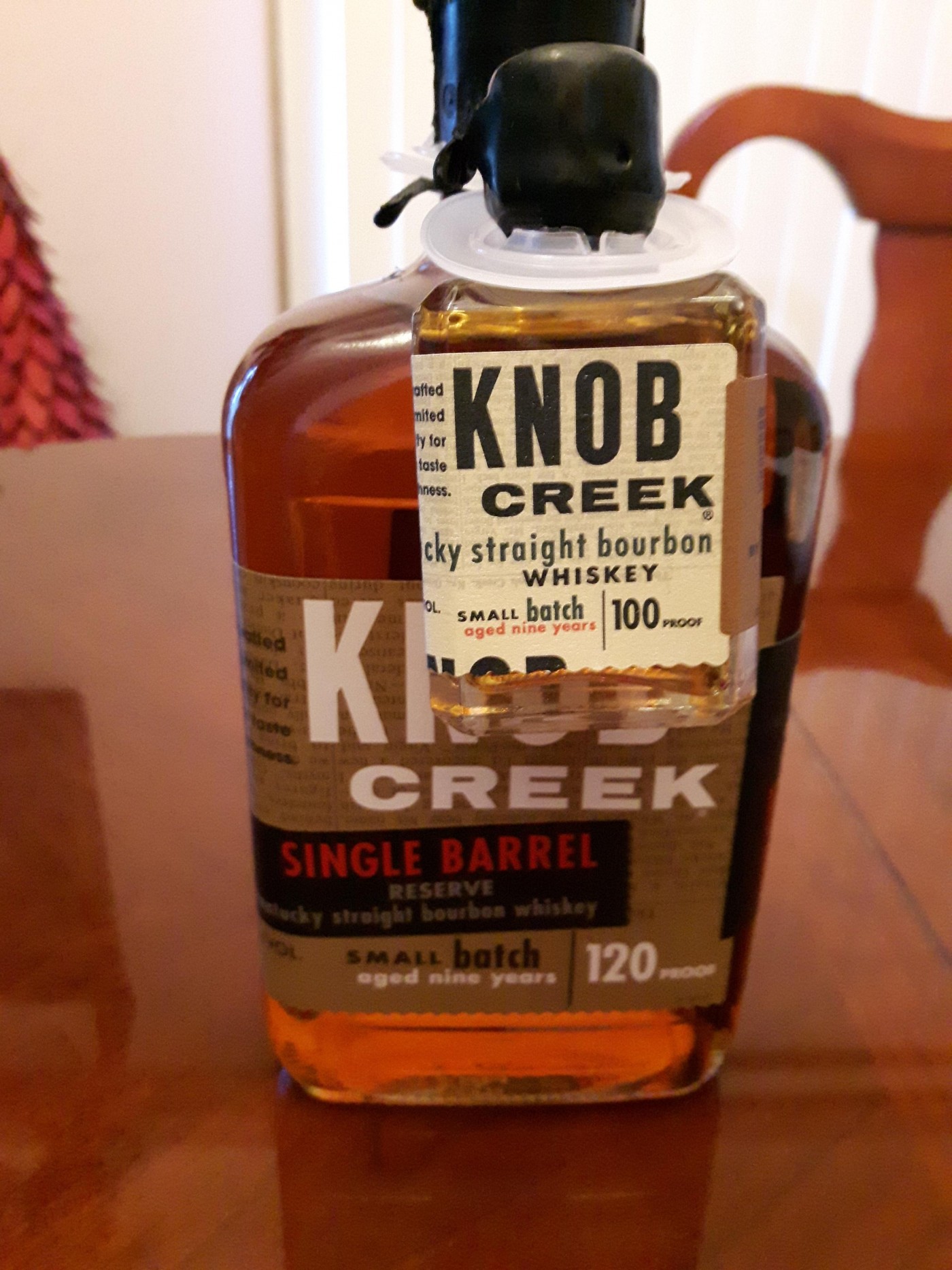 Knob Creek Single Barrel Reserve 9yo 60% 120 Proof; Bottled for McScrooge’s – Why? It was a decent price ($39.99) and a private barrel. It is a bit more mild than the standard KCSBR 120Proof. They had it to sample, and it tasted good. I opened it at our New Year’s celebration . . . and half the bottle disappeared. An easy sipping bourbon at 120 Proof.